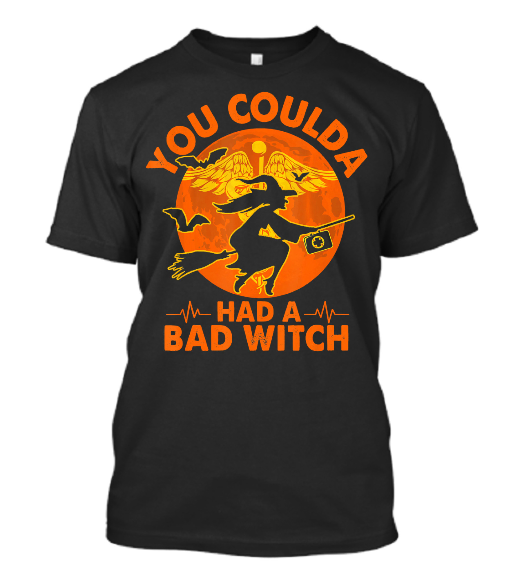 The You Coulda Had a Bad Witch Halloween Costume Broom T-shirt is designed for everyday wear and a consistent fit. Fabric is pre-shrunk ring-spun cotton with durable stitching. See the size chart below for exact measurements.