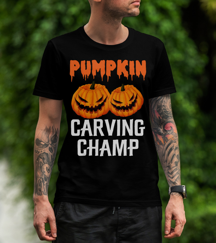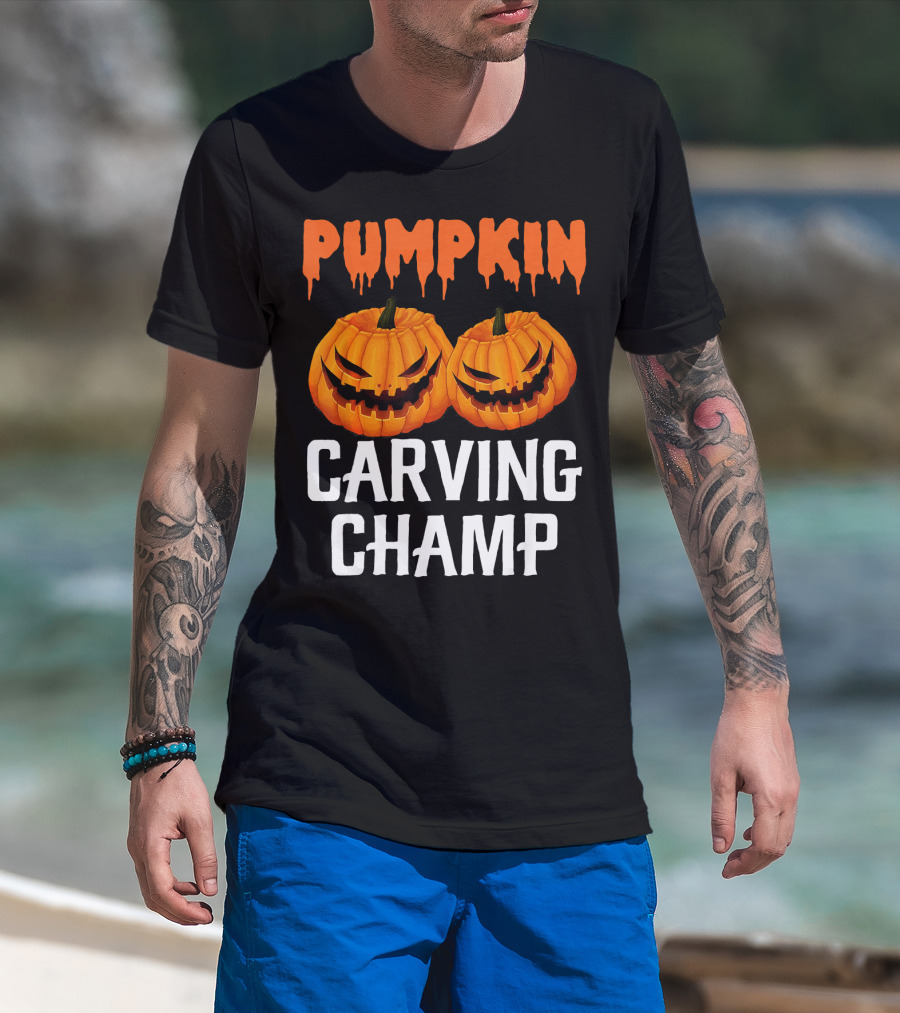 Pumpkin Carving Champ Halloween Creepy Design Competition T-Shirt