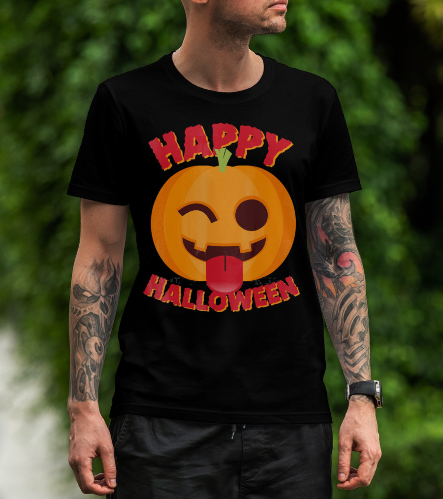 Happy Halloween Emoji Pumpkin Face With Tongue Out T-Shirt