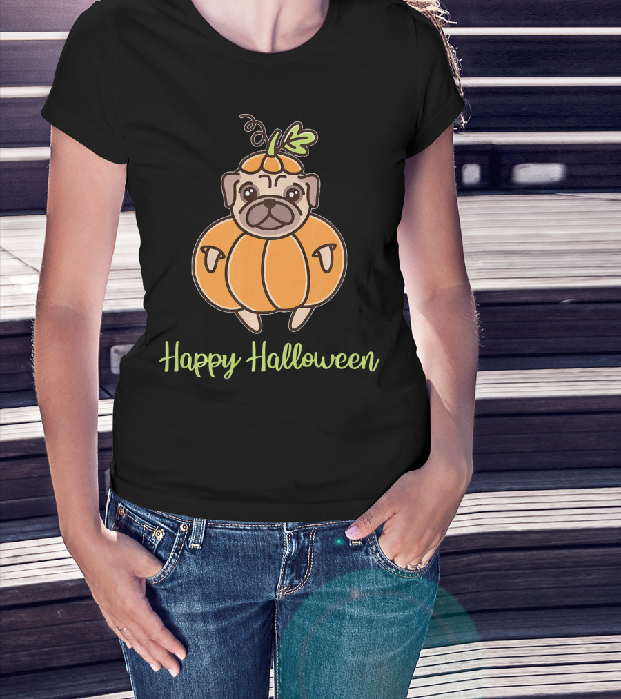 Happy Halloween Pumpkin Pug For Girls Boy T-Shirt