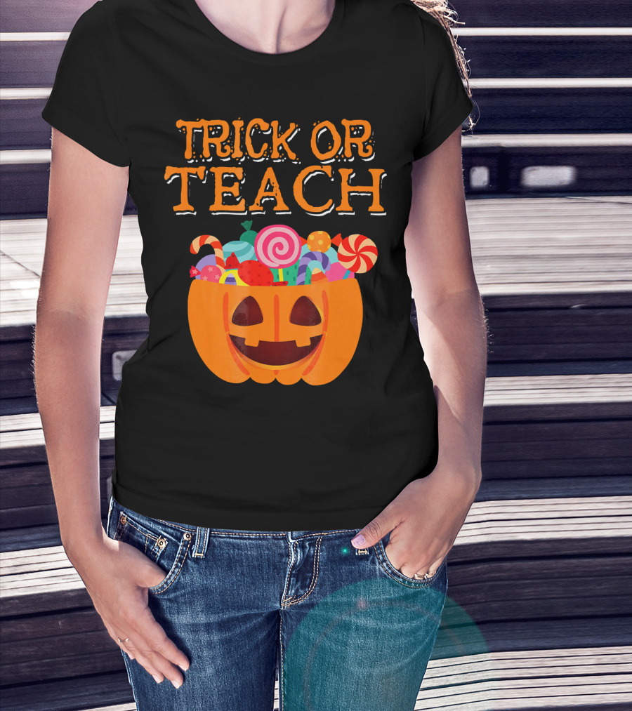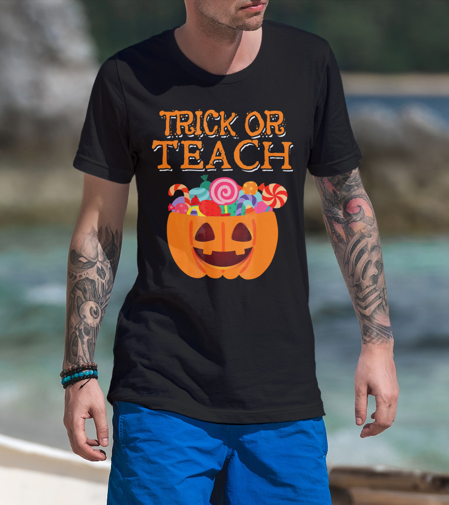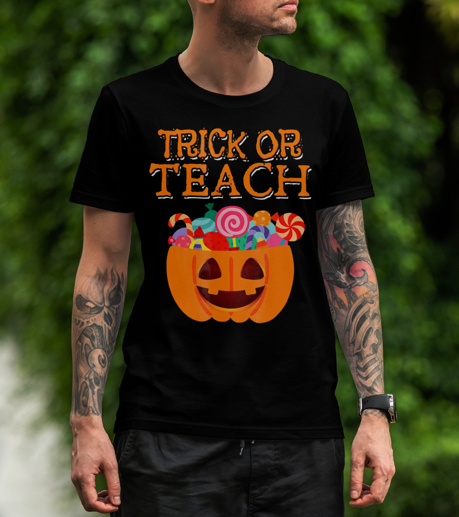 Trick Or Teach Pumpkin Candy Halloween Teacher T-Shirt