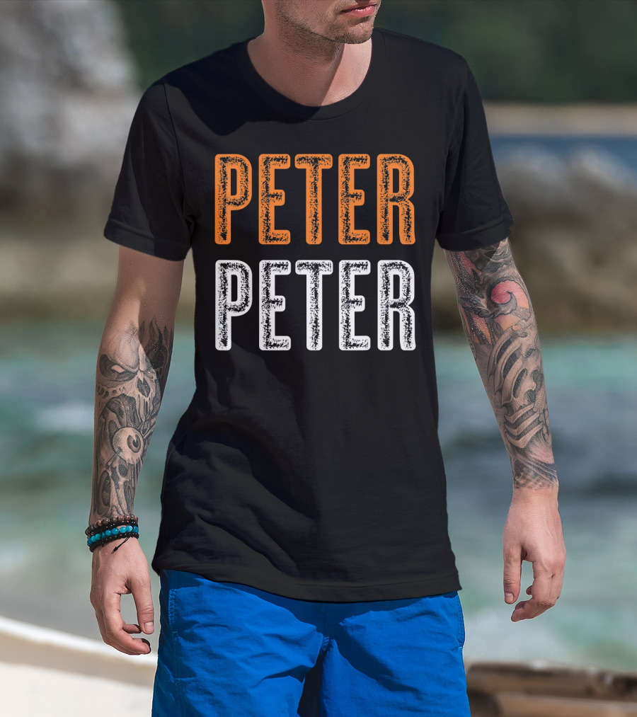The Peter Peter Pumpkin Eater Halloween Style Text Orange White T-shirt is designed for everyday wear and a consistent fit. Fabric is pre-shrunk ring-spun cotton with durable stitching. See the size chart below for exact measurements.