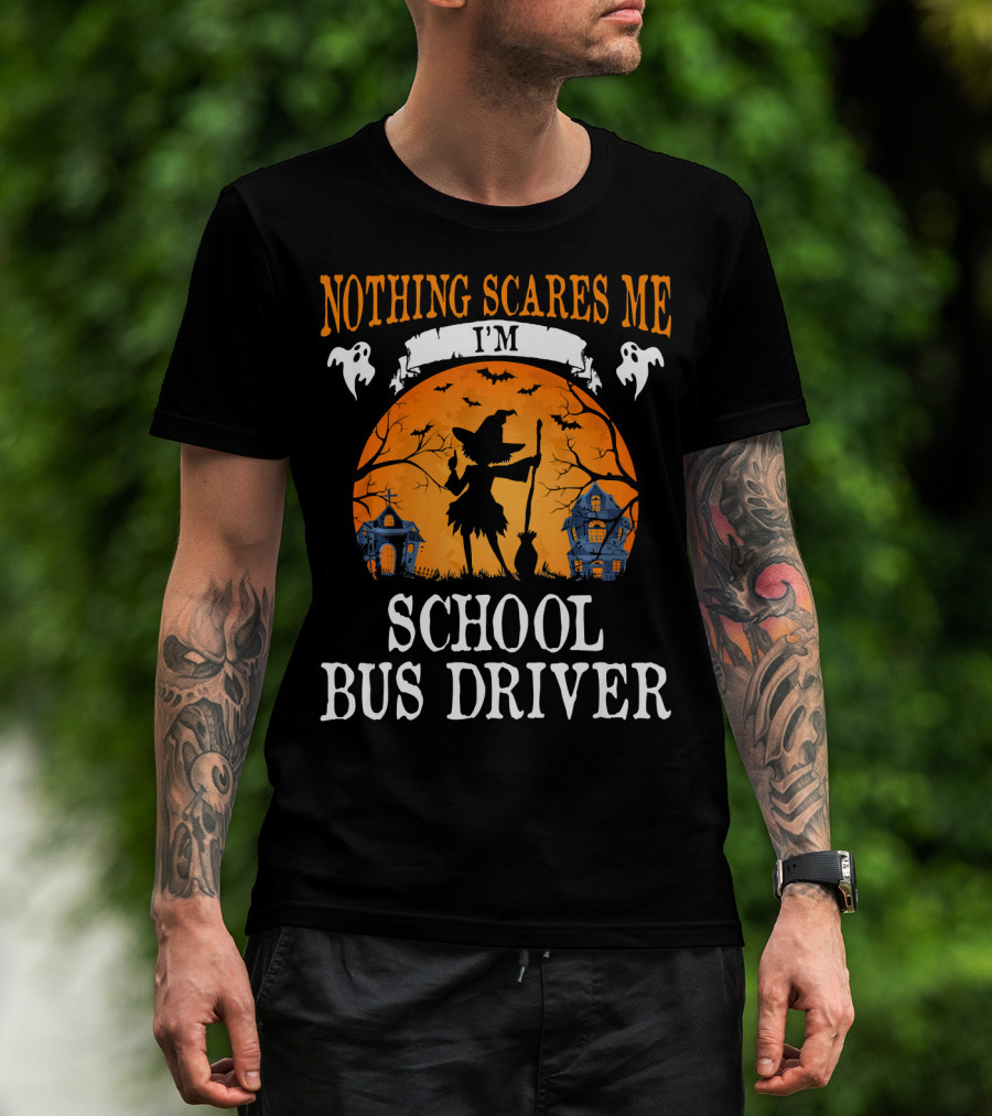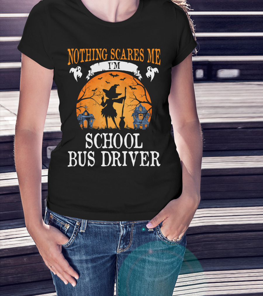Nothing Scares Me I’m School Bus Driver Halloween Witch And Haunted Houses T-Shirt
