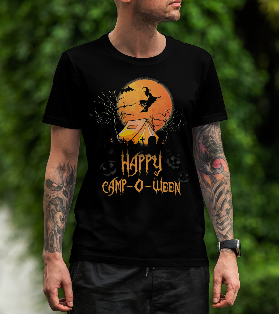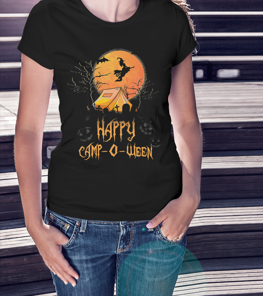 Happy Camp O Ween Halloween Witch Tent Scene T-Shirt