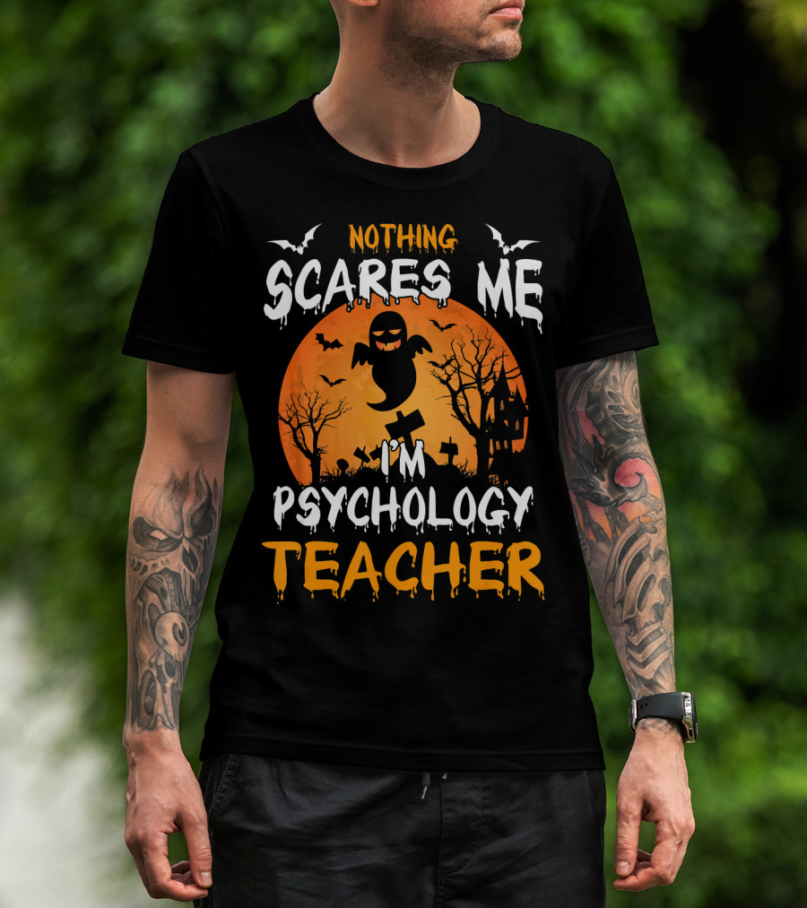 Nothing Scares Me I'm Psychology Teacher Halloween Ghost Bat Trees T-Shirt