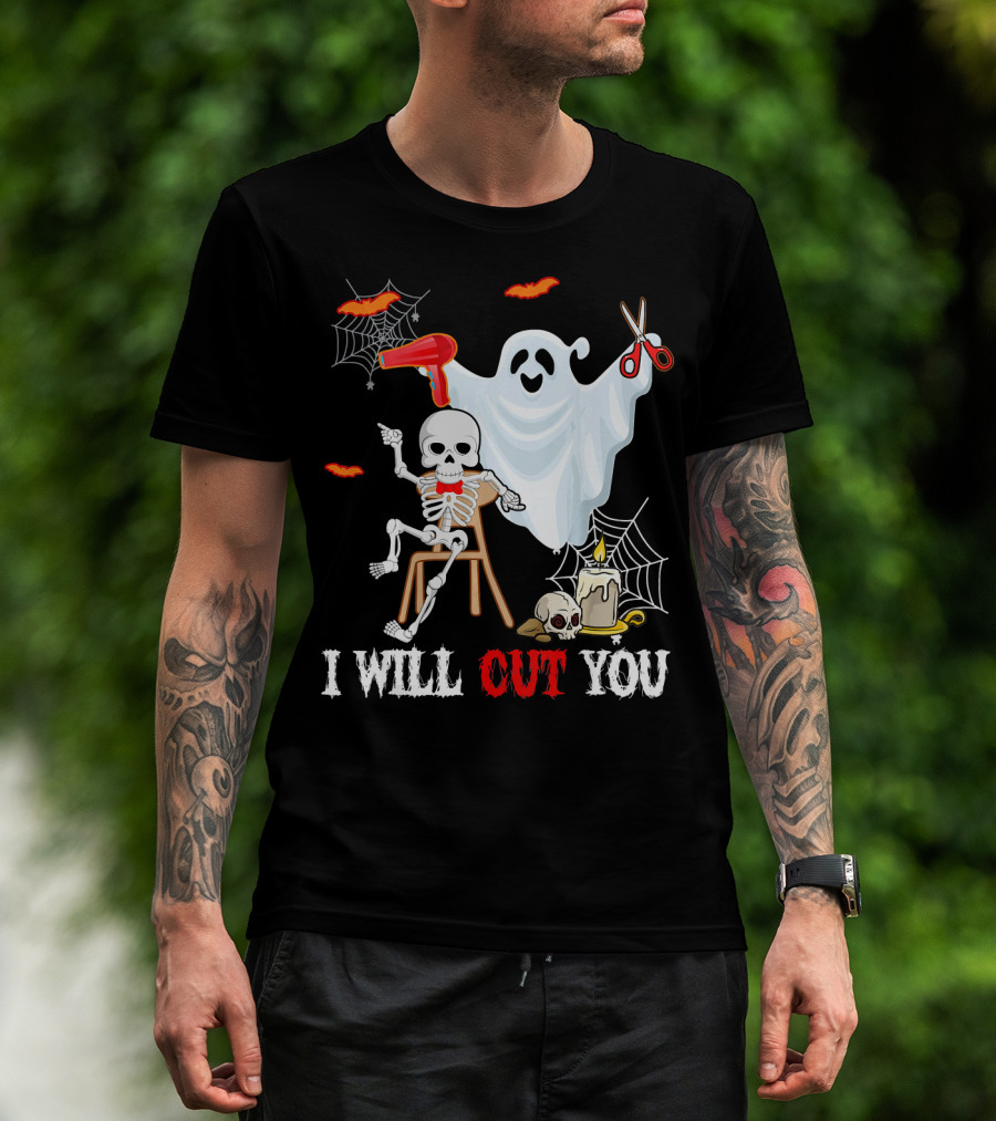 I Will Cut You Funny Boo Hairdresser Ghost Skeleton T-Shirt