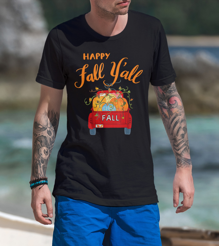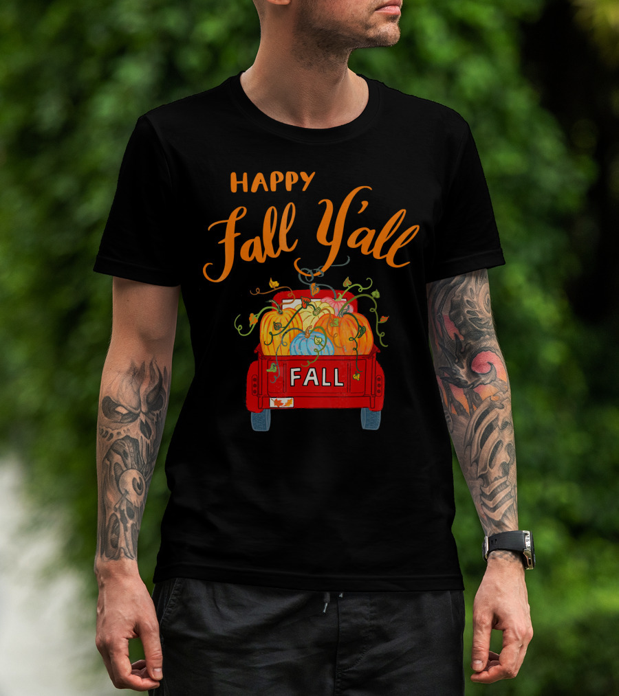 Happy Fall Y'all Fall Truck With Pumpkins T-Shirt