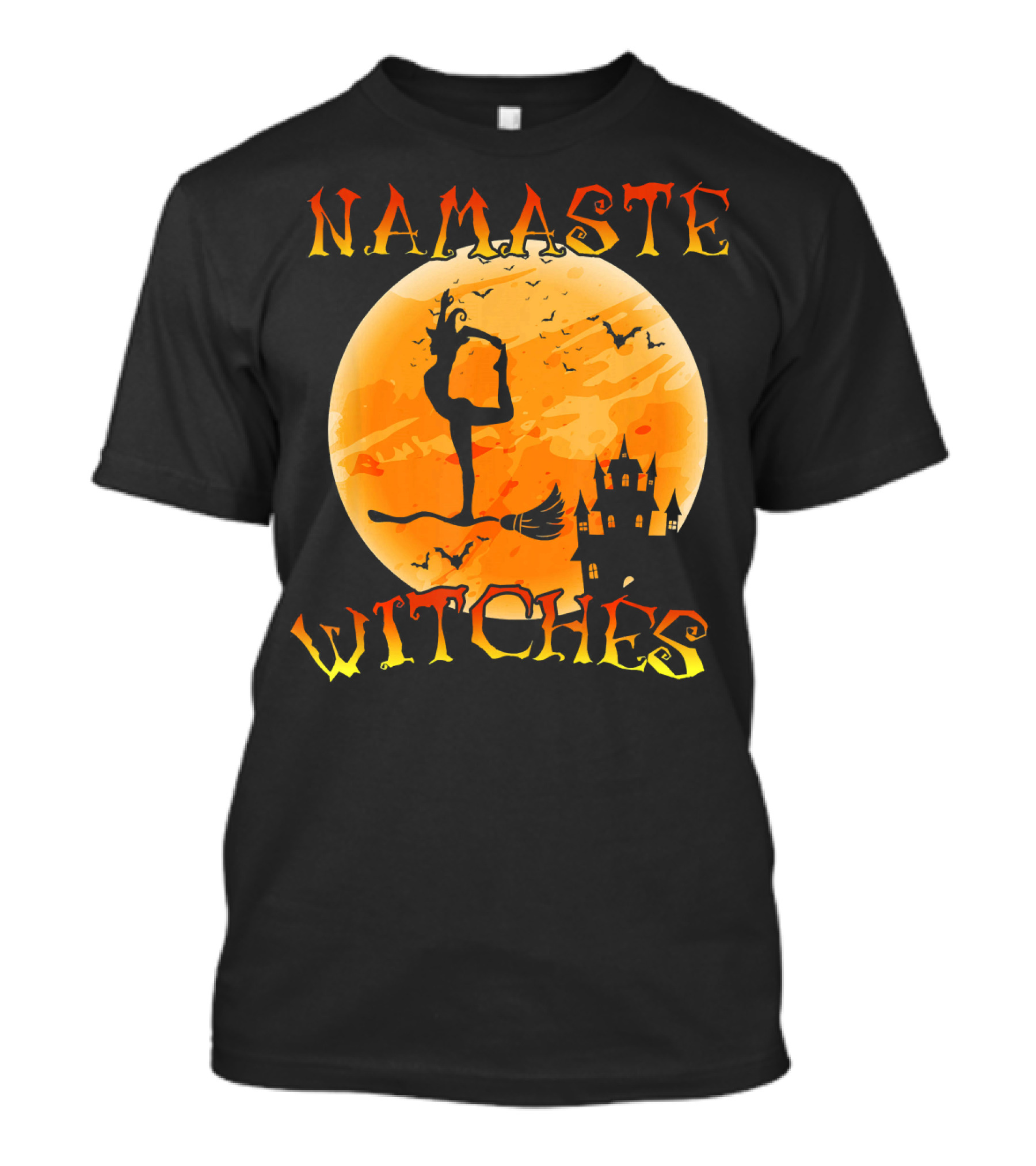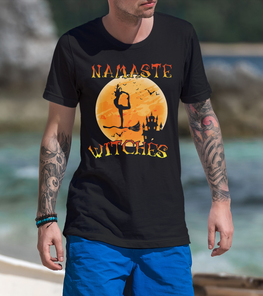 Namaste Witches Yoga Halloween Moon Castle T-Shirt