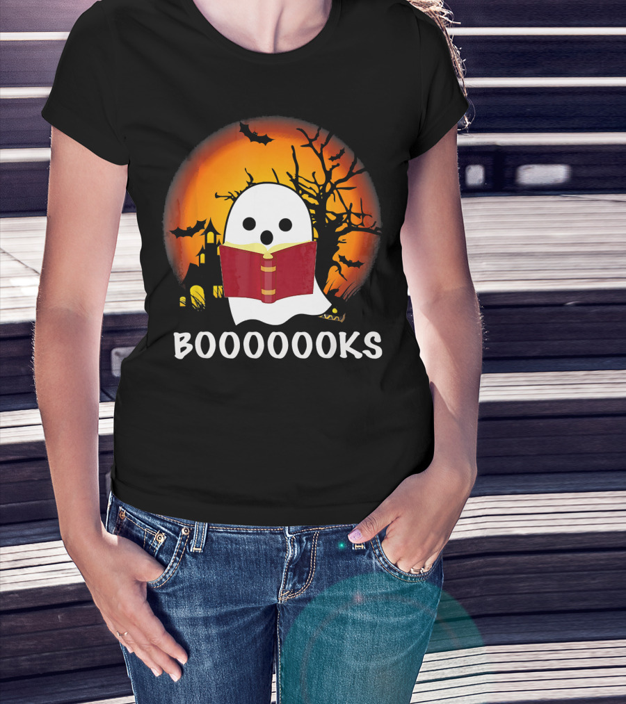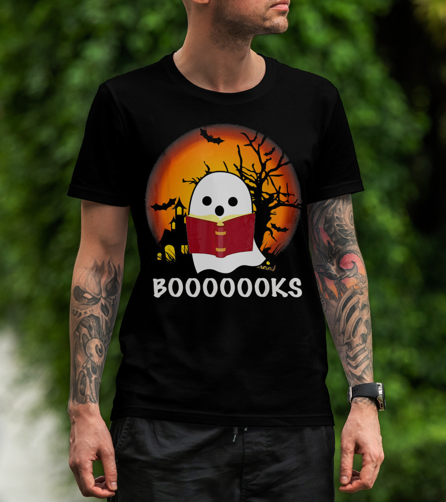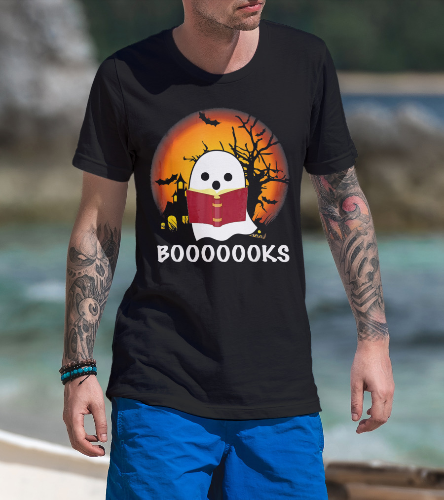 Boo Read Books Halloween Boooooooks Ghost With Red Book And Spooky Bats T-Shirt