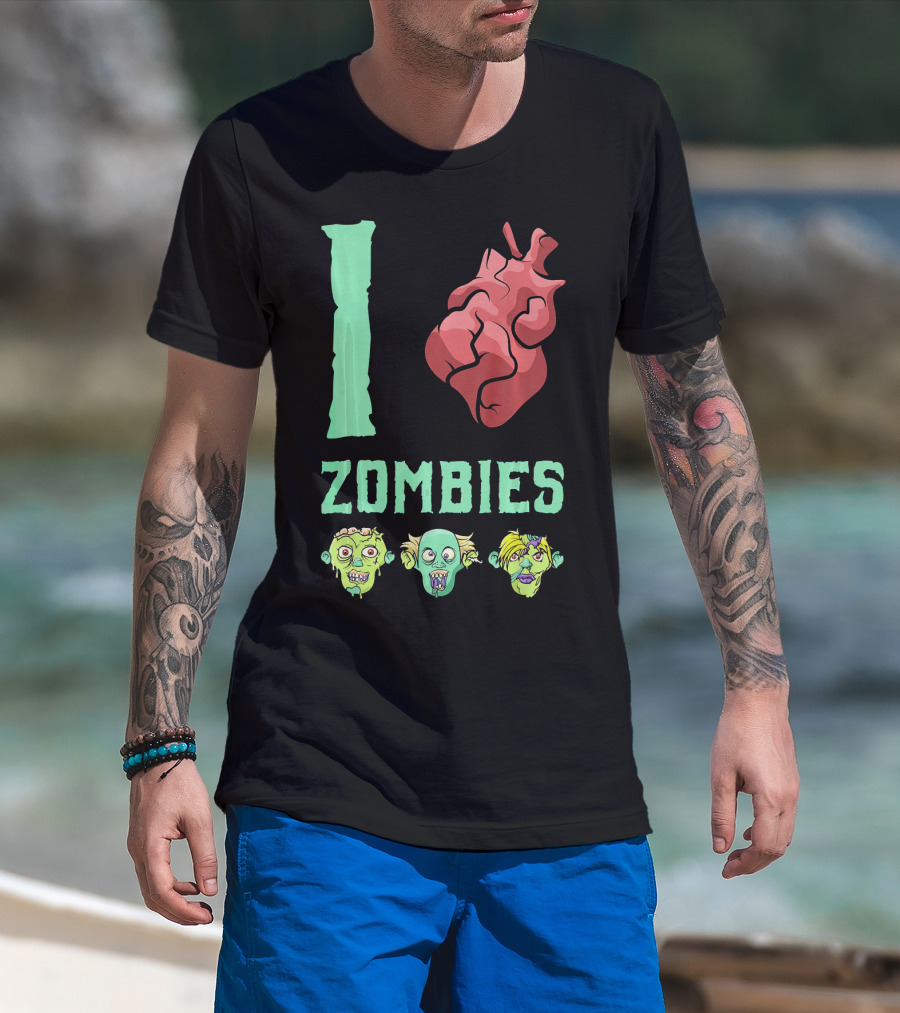 I Love Zombies Heart With Zombie Faces T-Shirt