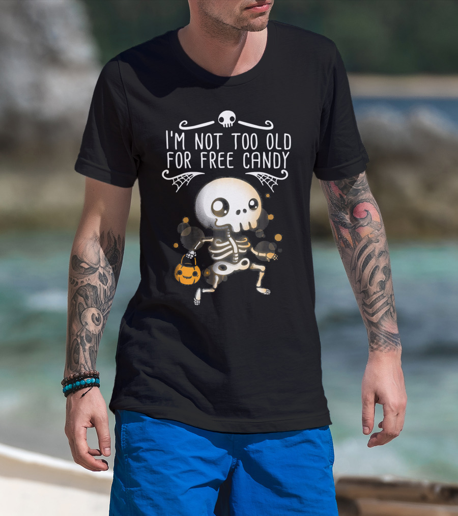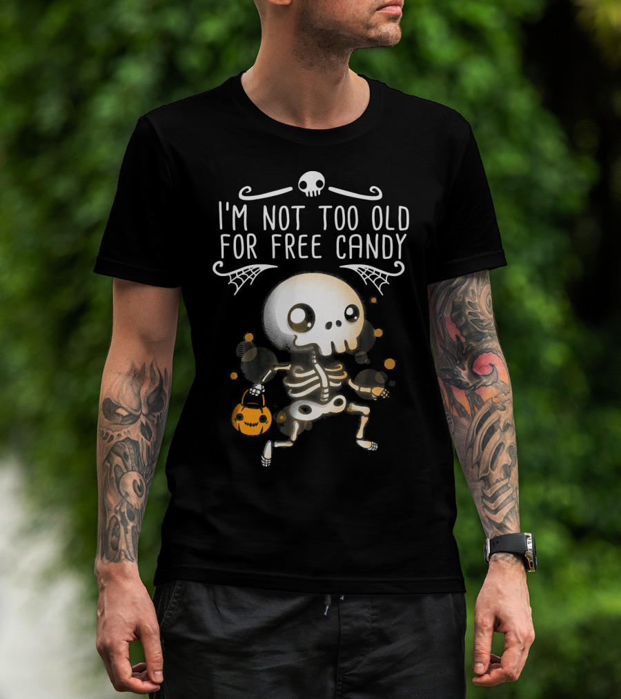 I'm Not Too Old For Free Candy Skeleton With Pumpkin Trick-or-Treating T-Shirt