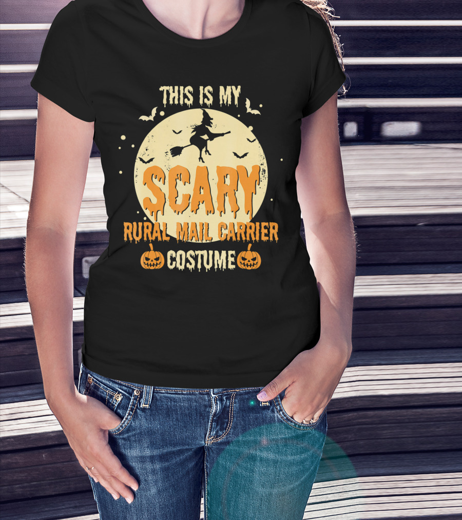 This Is My Scary Rural Mail Carrier Costume Witch Moon Bats Pumpkins T-Shirt