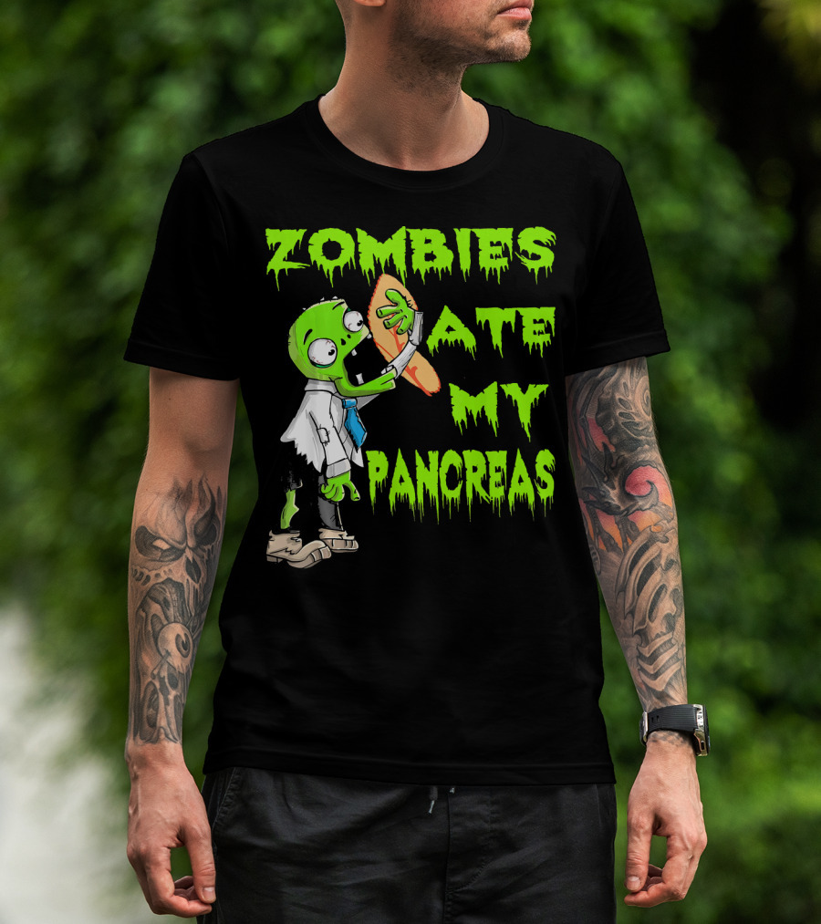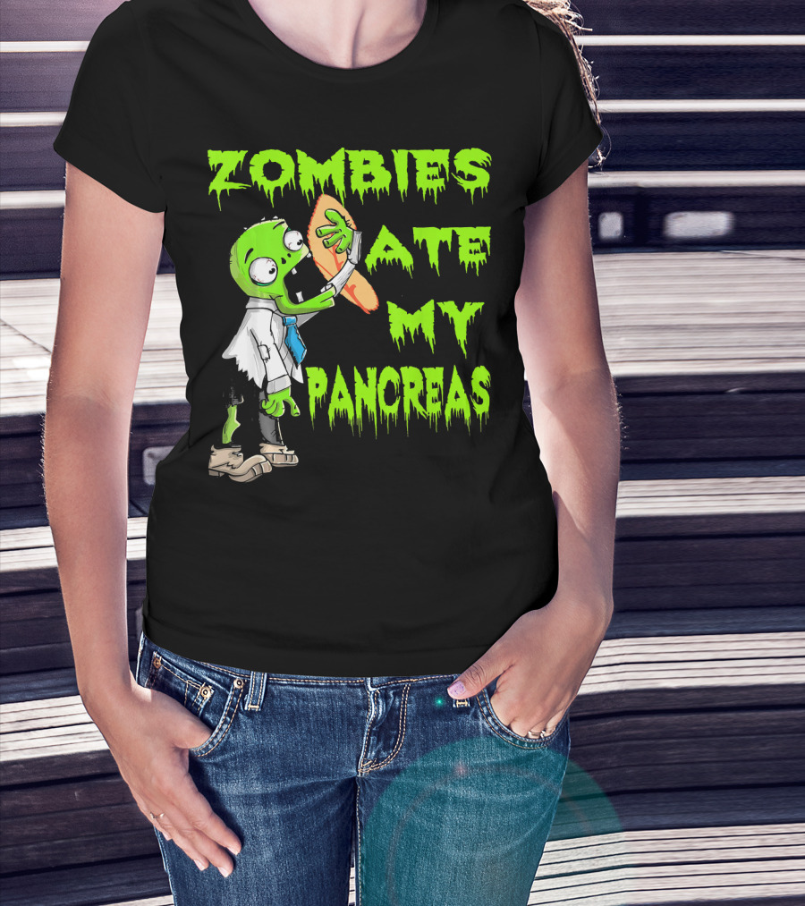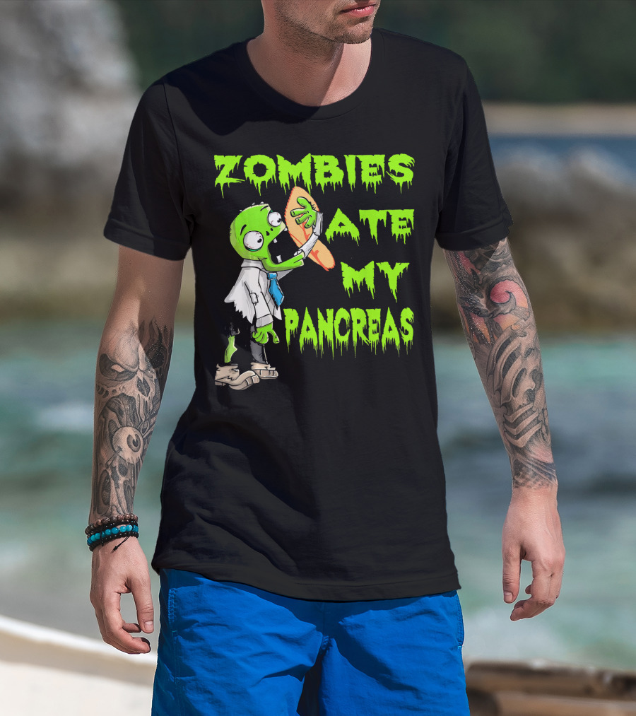 Zombies Ate My Pancreas Diabetes Awareness Cartoon Zombie Holding Organ T-Shirt