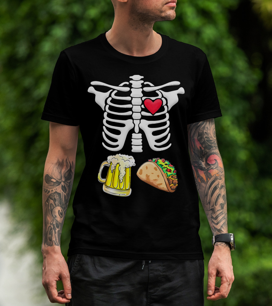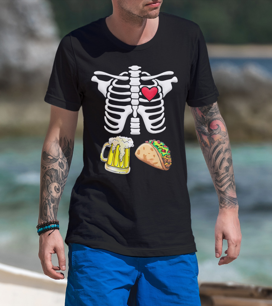 Skeleton Ribcage Heart Tacos Beer Pregnancy Novelty T-Shirt