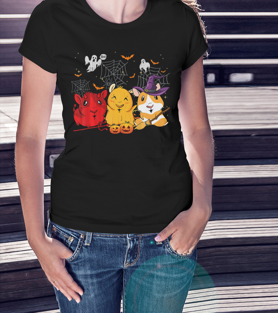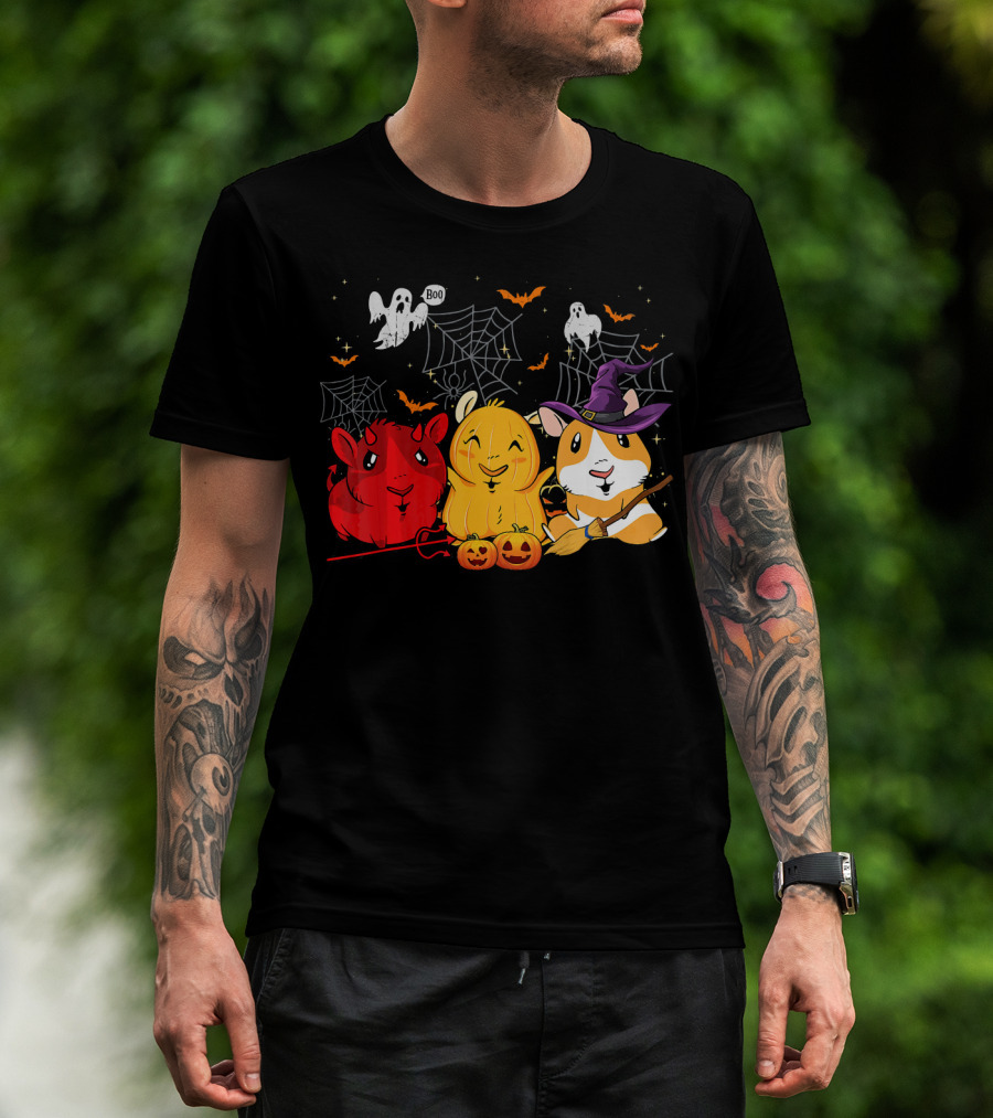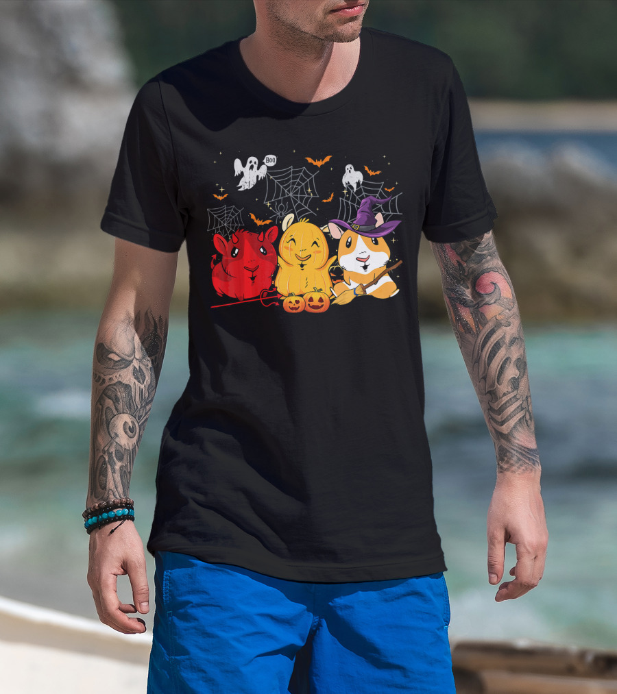 Halloween Funny Guinea Pigs In Costumes With Ghosts And Spiderwebs T-Shirt
