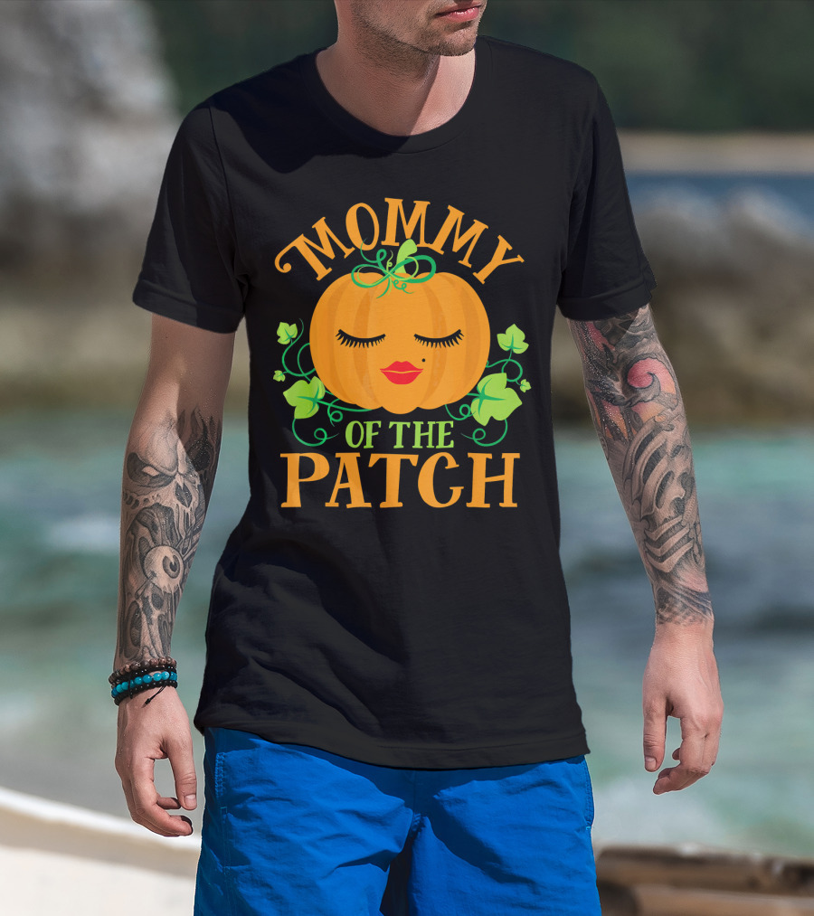 Mommy Pumpkin Of The Patch Face With Green Leaves And Vines T-Shirt