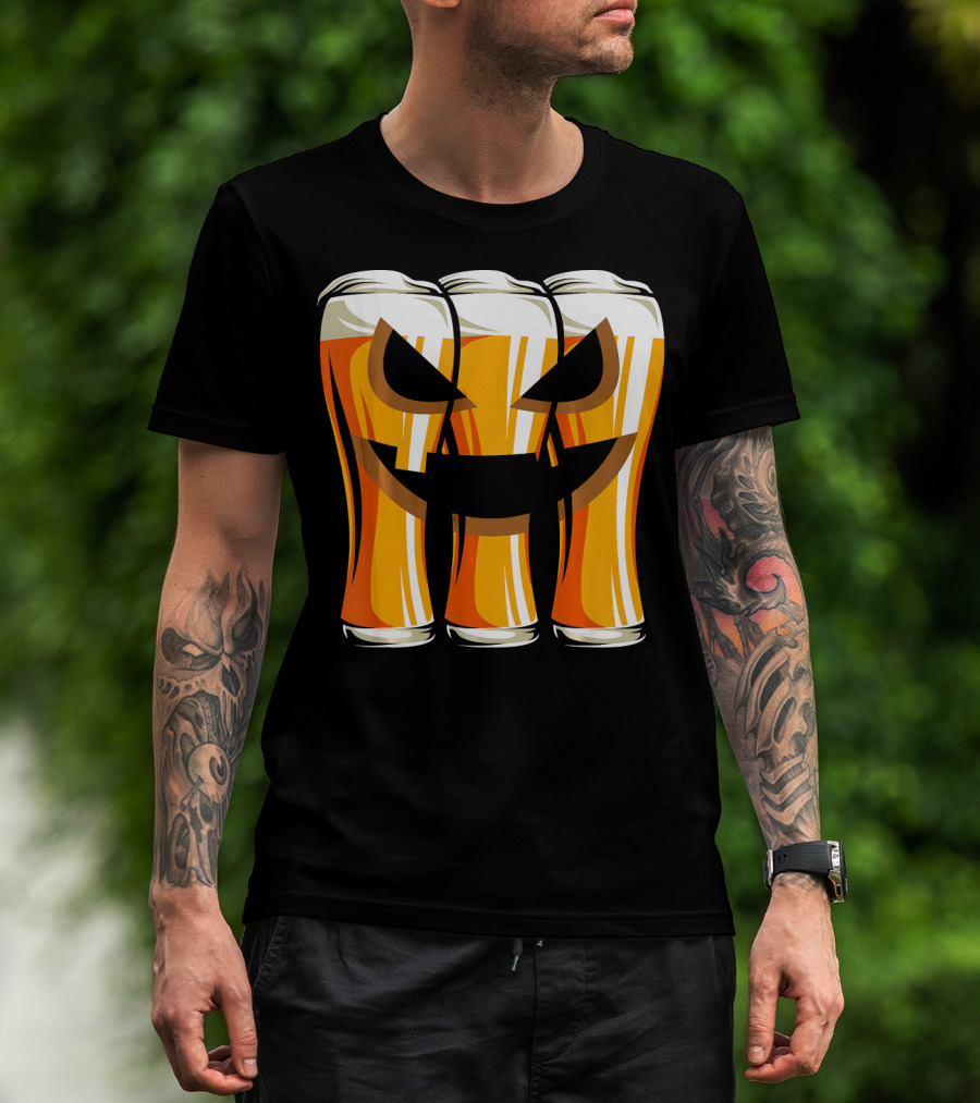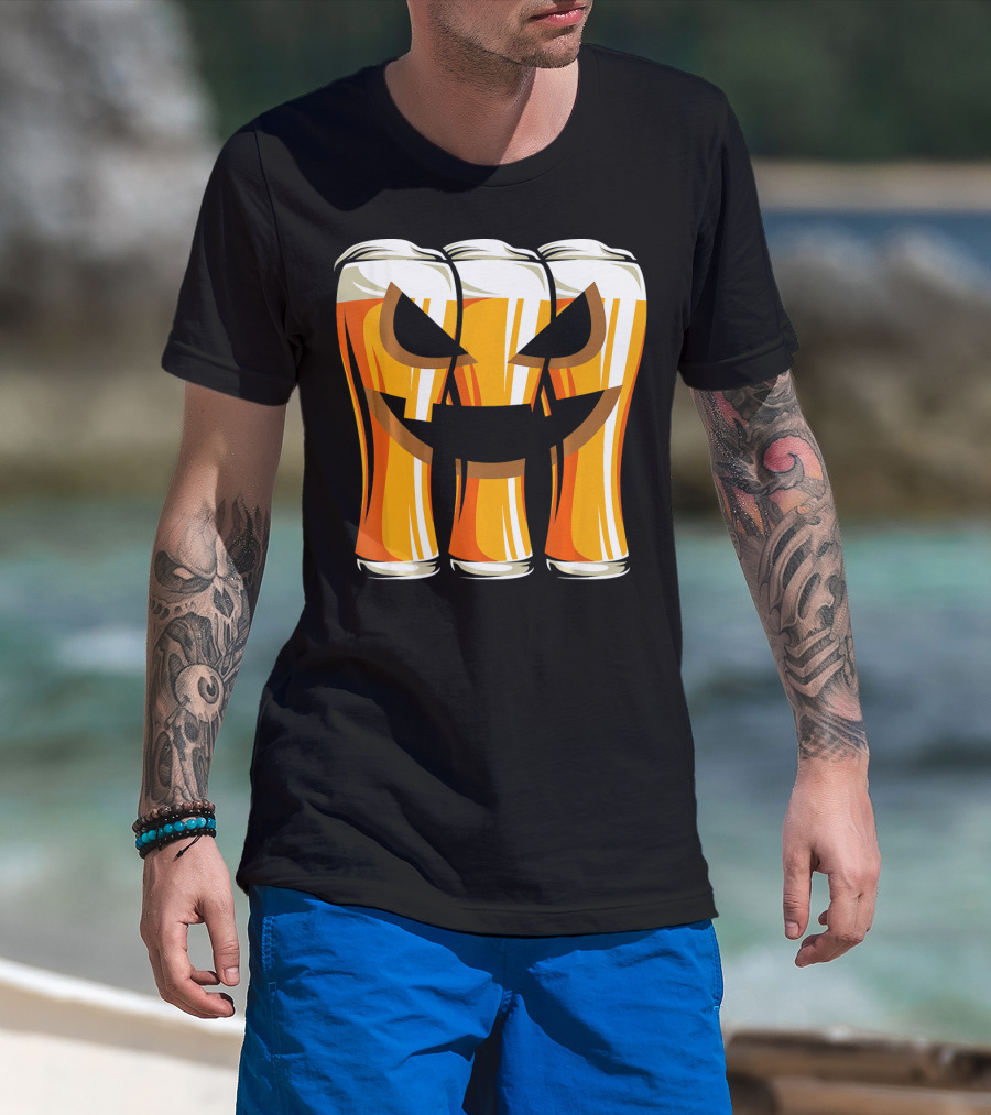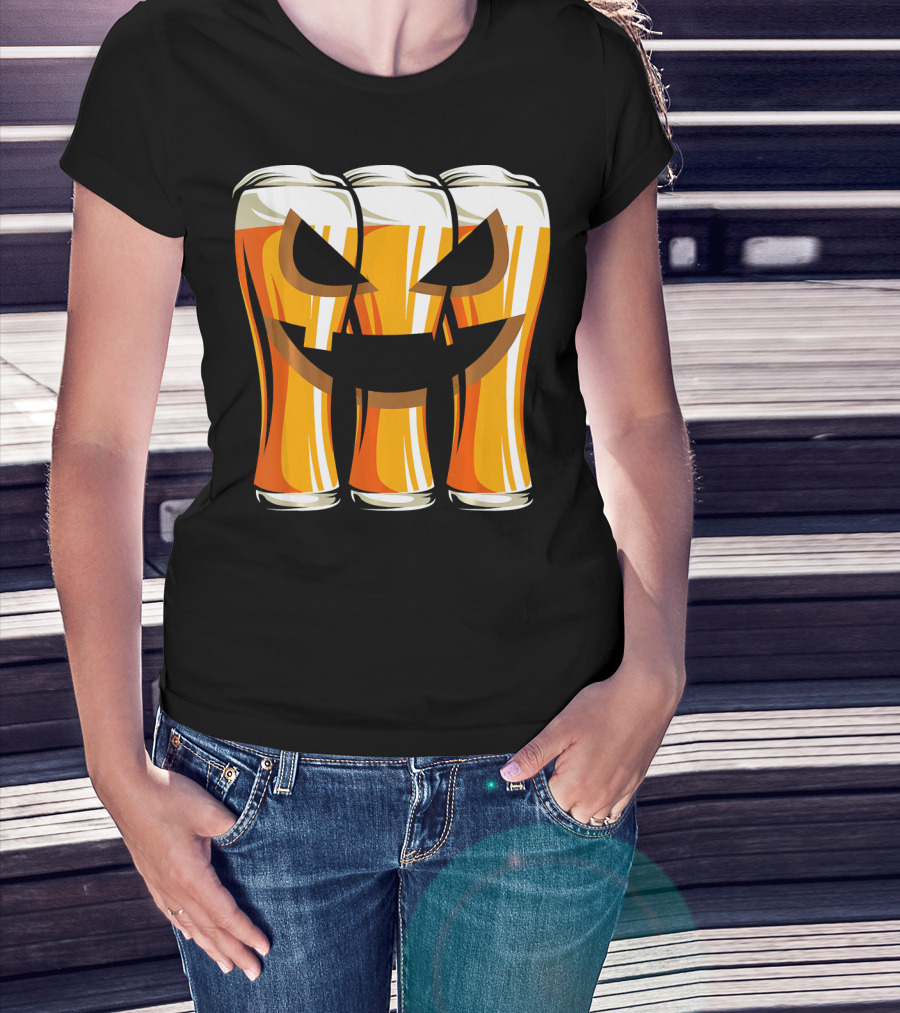 Halloween Pumpkin Beer Glasses Funny Drinking Scary T-Shirt