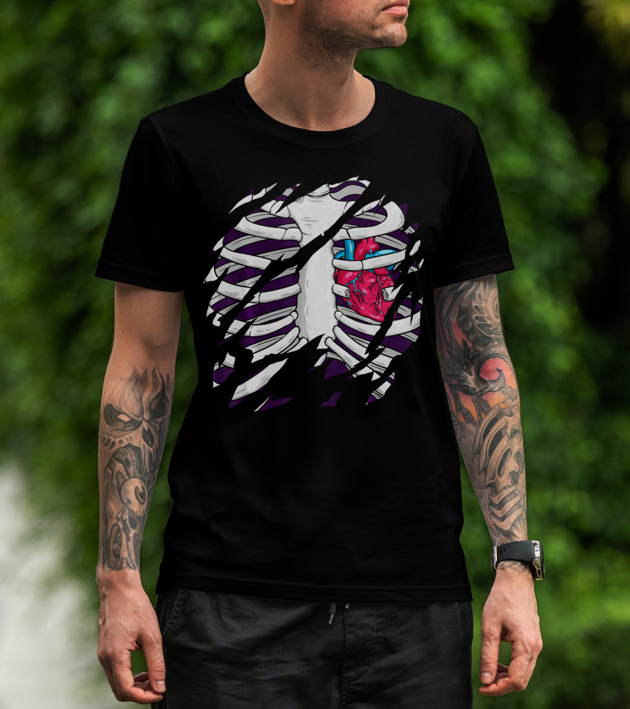 Skeleton Rib Cage Heart Halloween Costume Ribcage Heartbeat T-Shirt