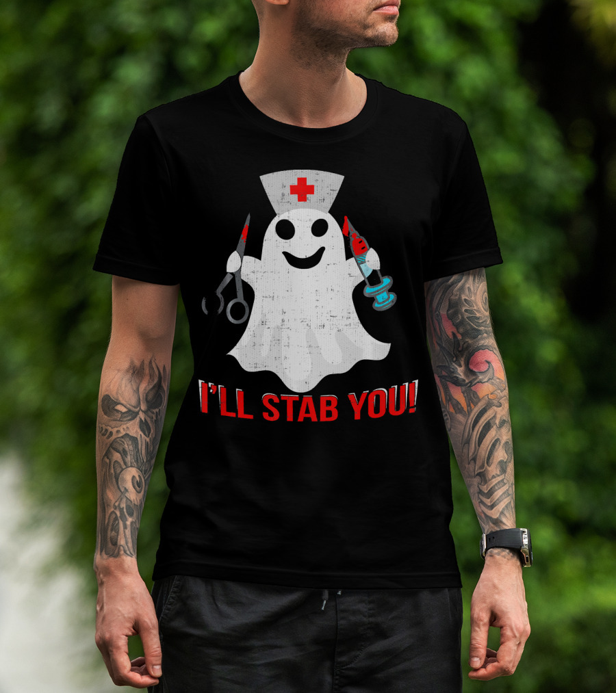 Funny Ghost Nurse I'll Stab You Halloween Humor T-Shirt