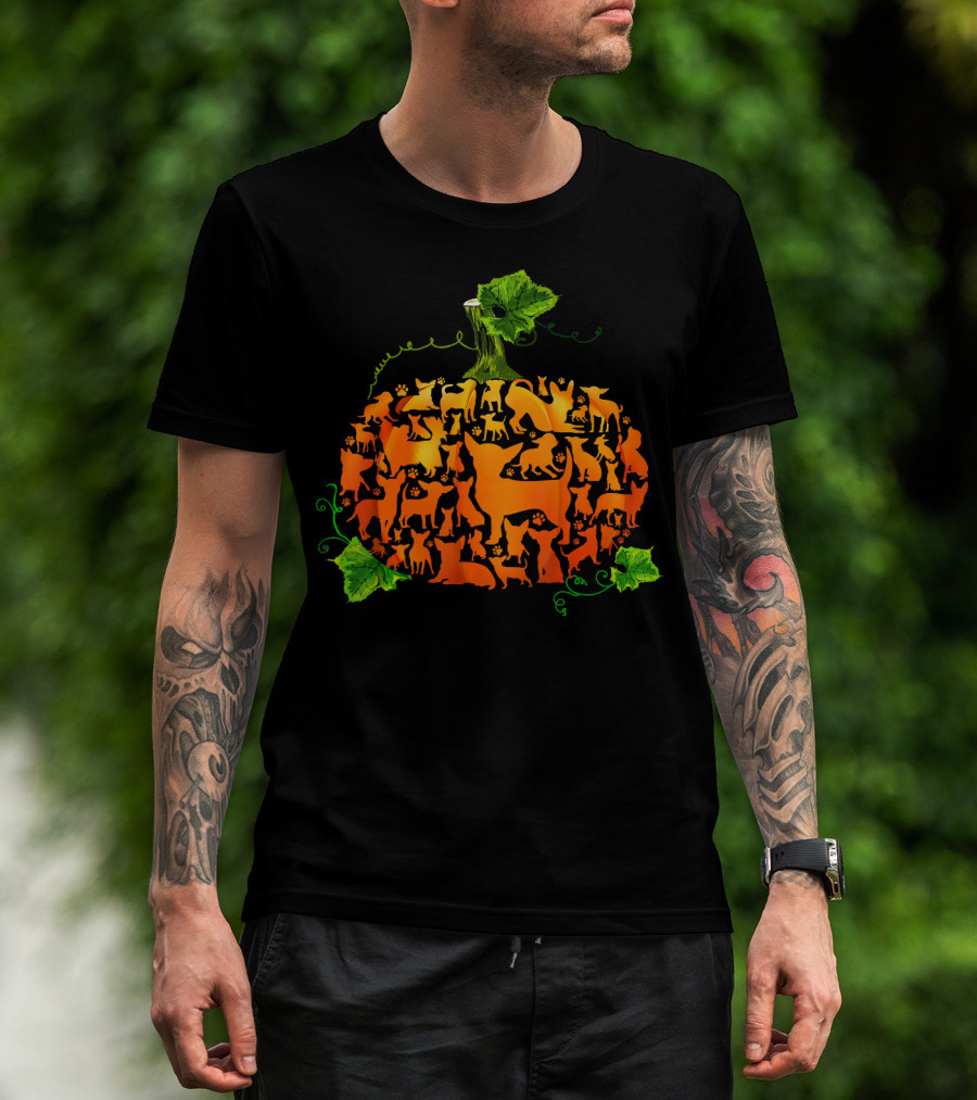 Pumpkin Chihuahua Dog Silhouette Collage T-Shirt