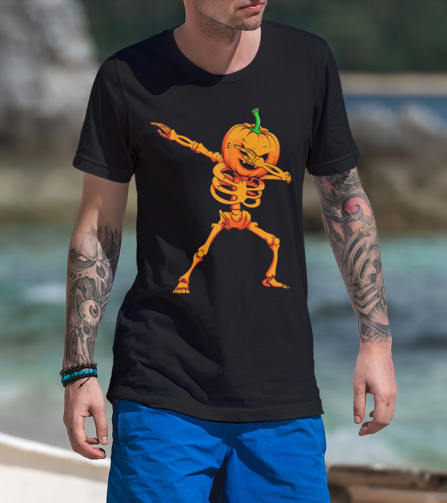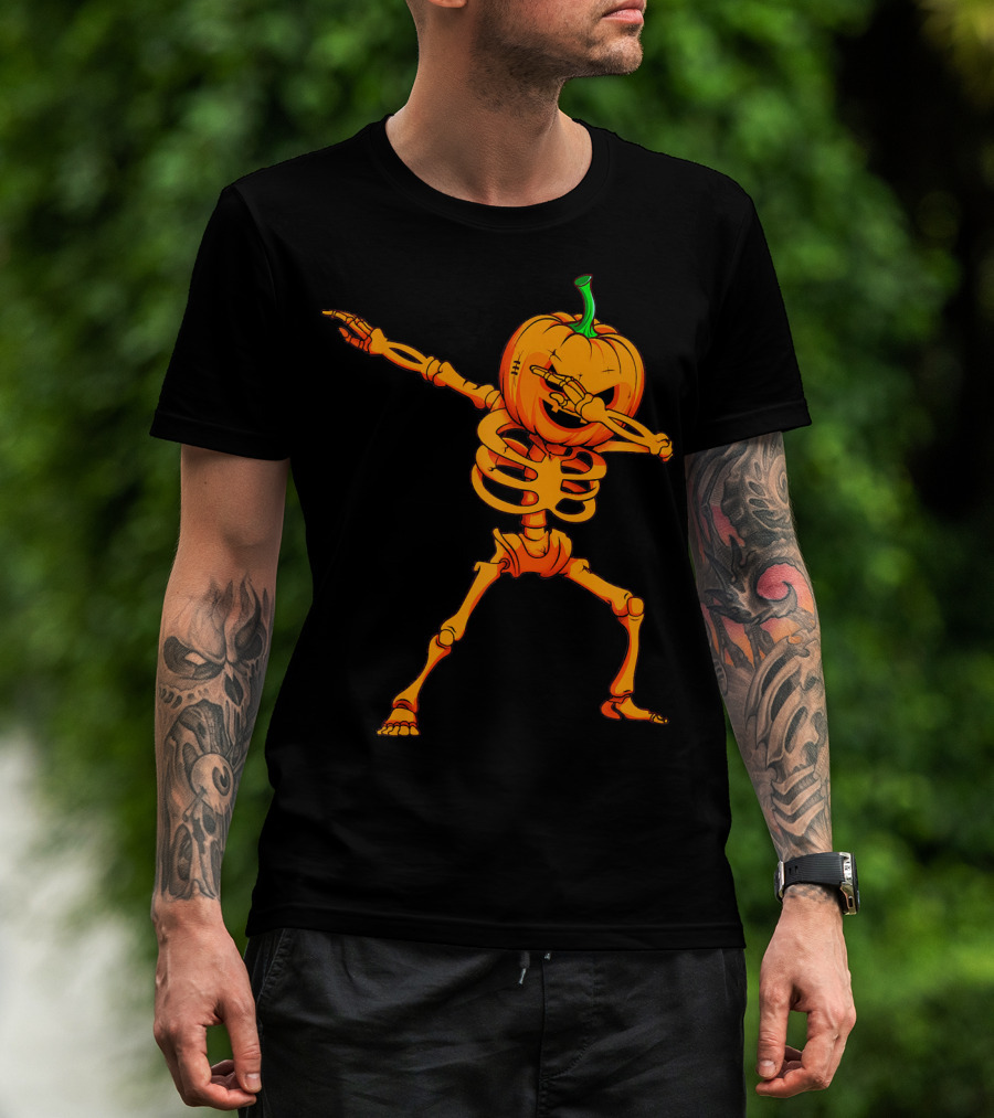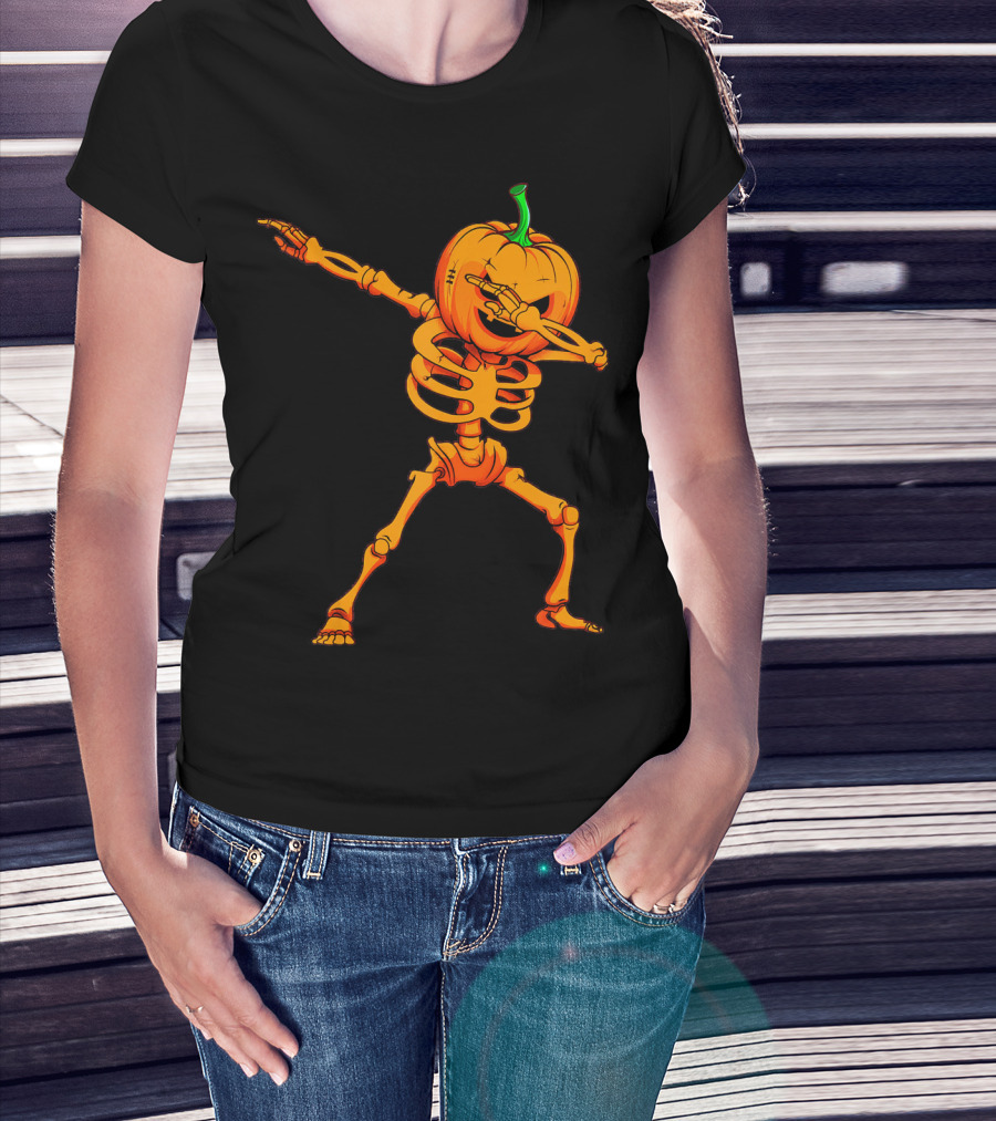 Dabbing Skeleton Pumpkin Halloween Dance T-Shirt