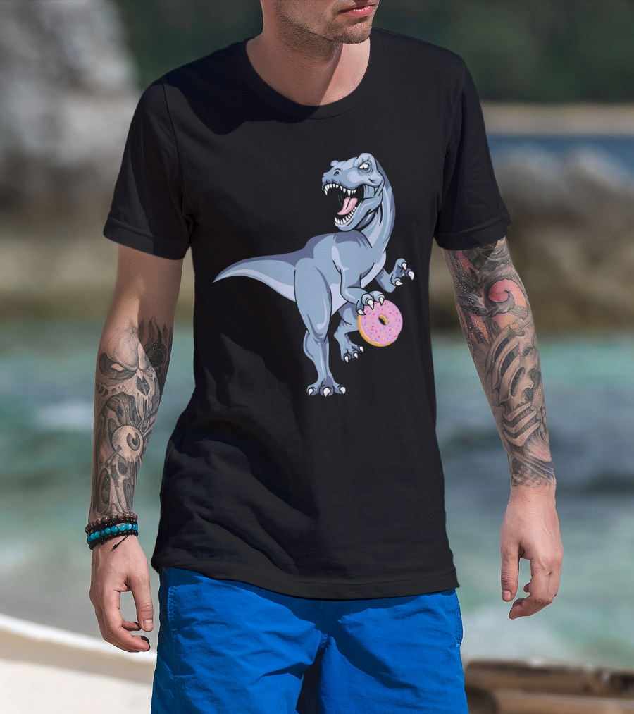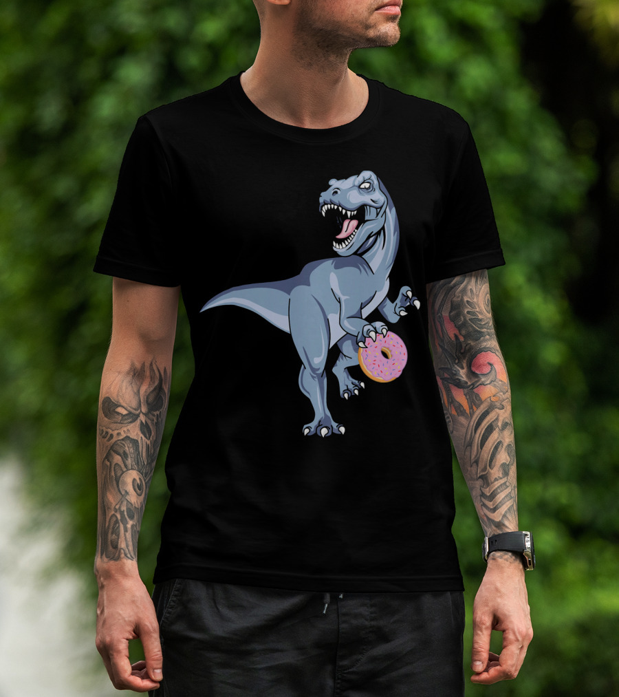 The Dinosaur Donut Dino Doughnut Sprinkles T-Rex T-shirt is designed for everyday wear and a consistent fit. Fabric is pre-shrunk ring-spun cotton with durable stitching. See the size chart below for exact measurements.