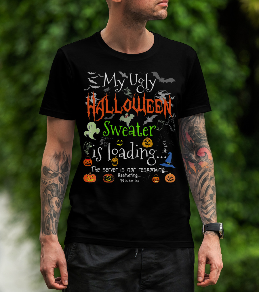 The My Ugly Halloween Sweater Is Loading The Server Is Not Responding Restarting FPS Is Too Low T-shirt is designed for everyday wear and a consistent fit. Fabric is pre-shrunk ring-spun cotton with durable stitching. See the size chart below for exact measurements.