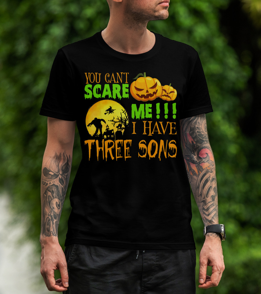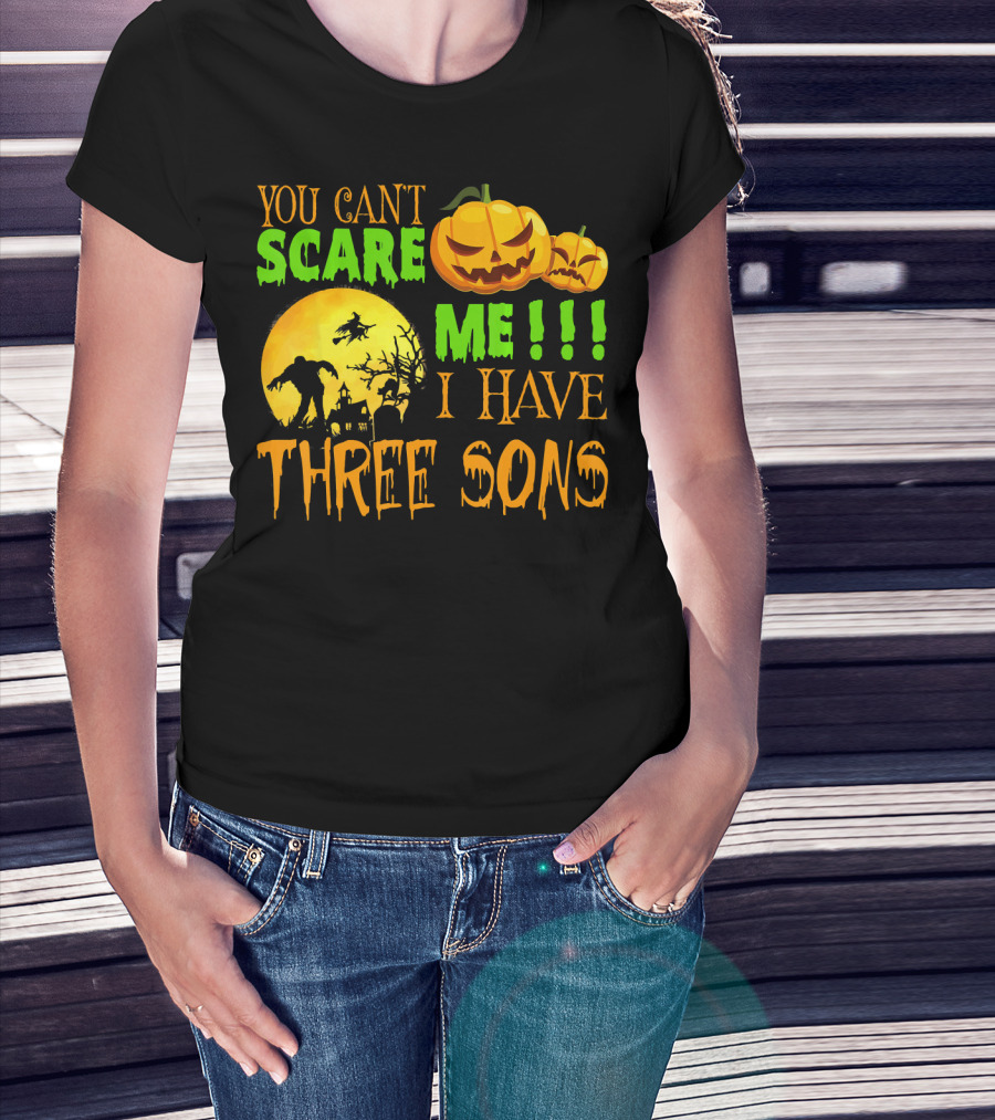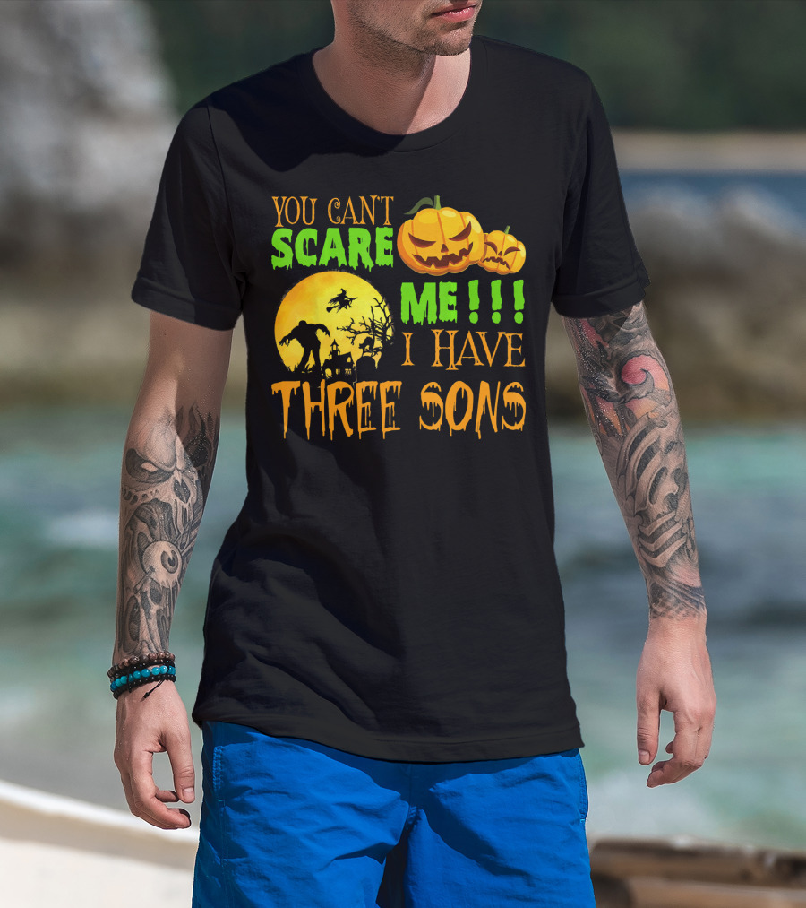 YOU CAN'T SCARE ME I HAVE THREE SONS HALLOWEEN PUMPKINS WITCH AND ZOMBIE T-Shirt