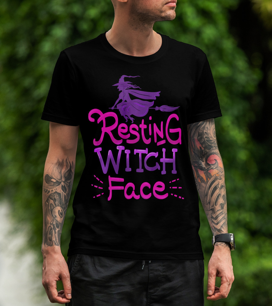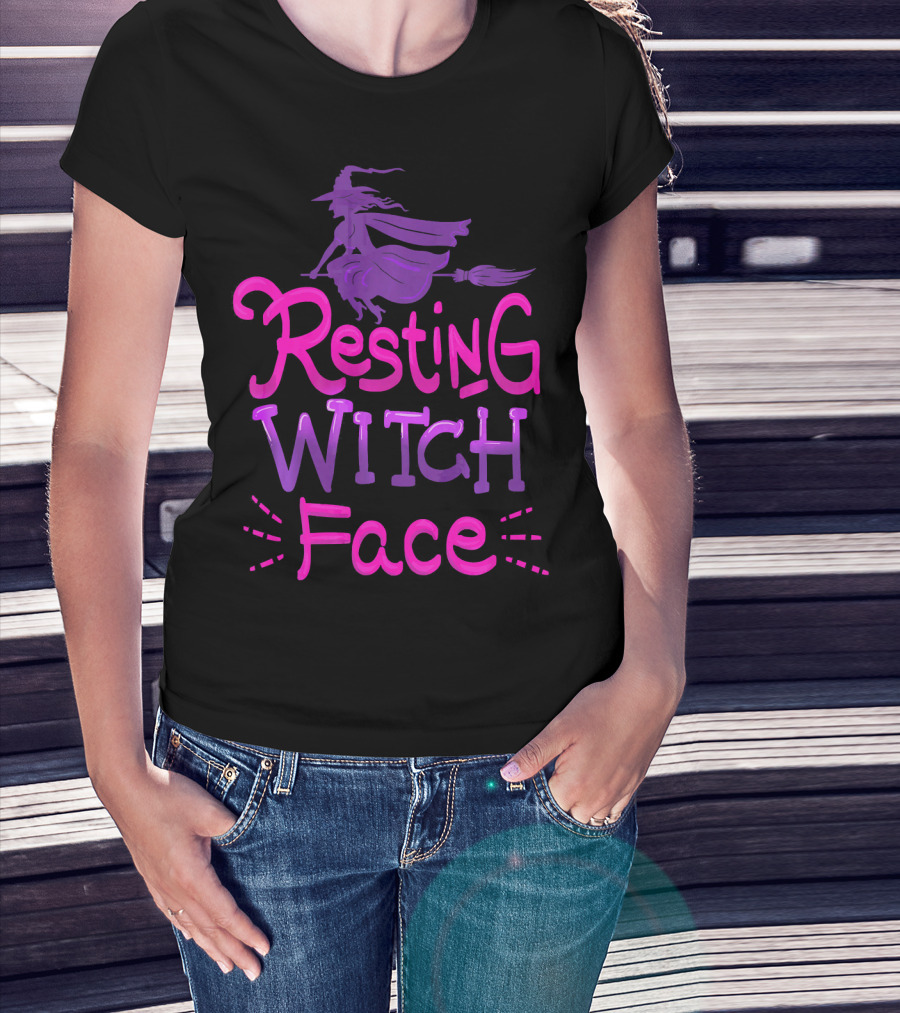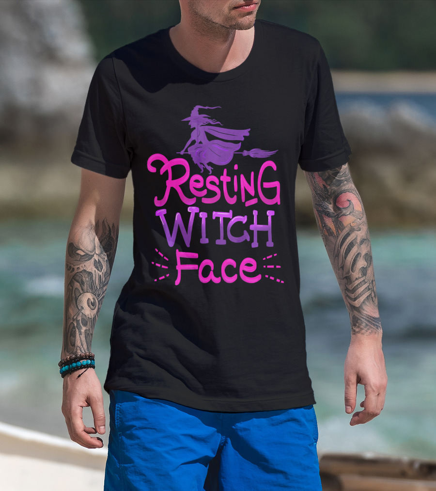 Resting Witch Face Halloween Broomstick T-Shirt