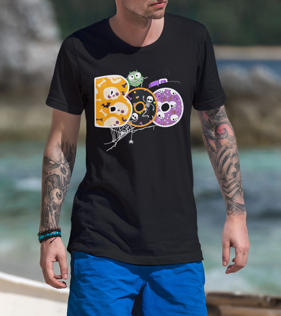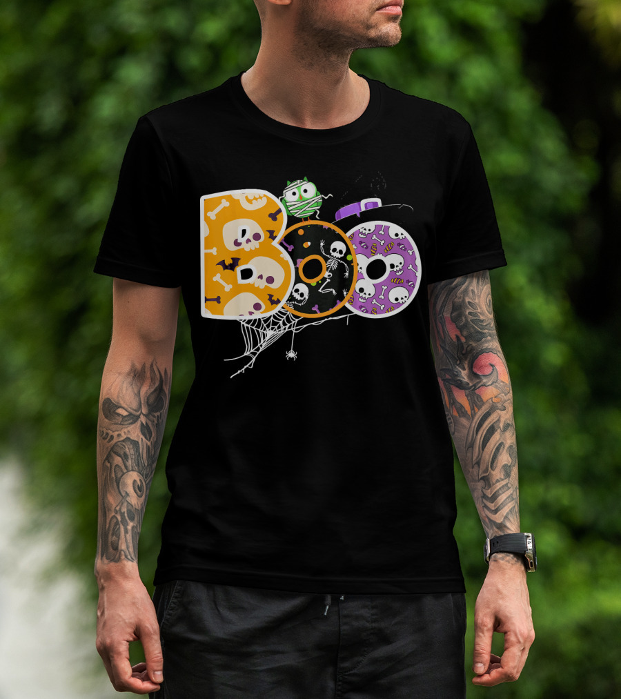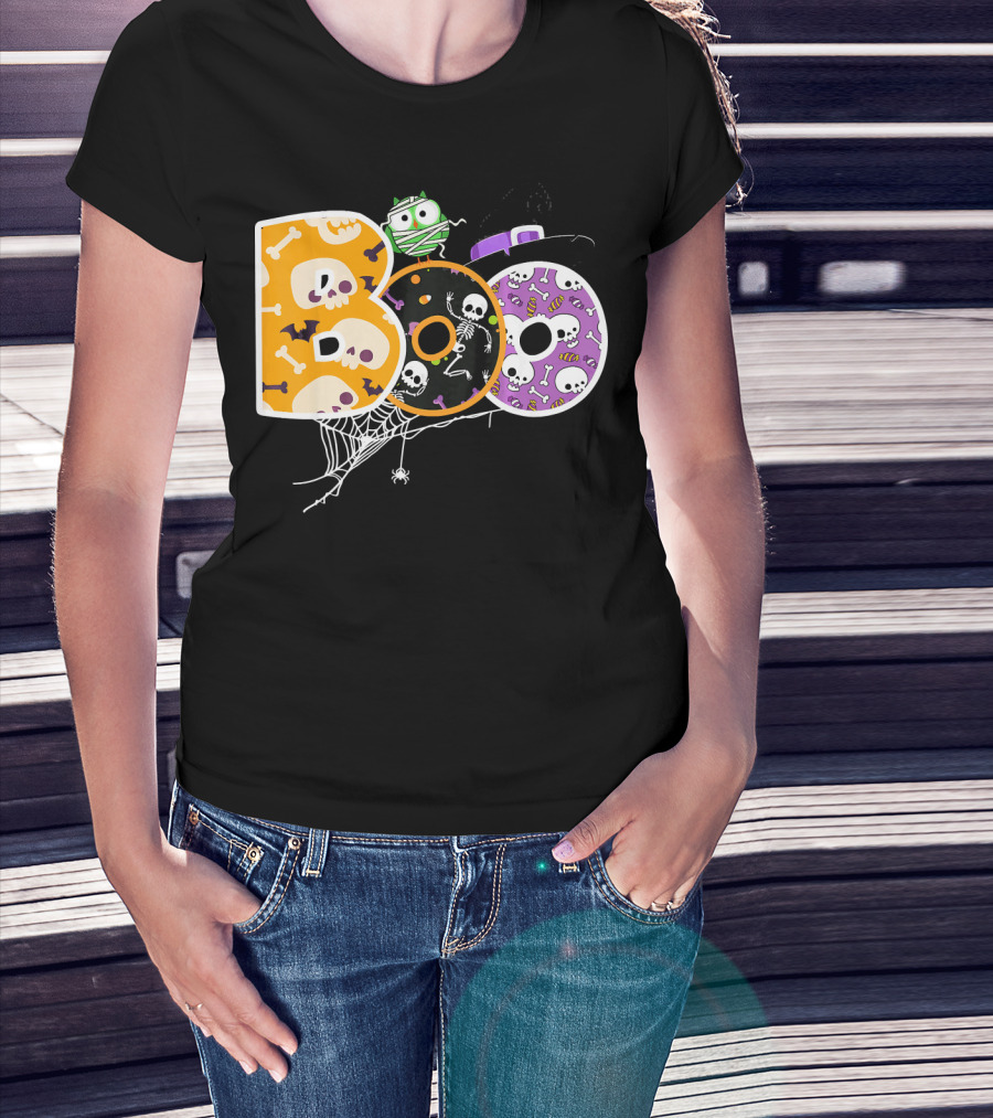 Boo Halloween Skeleton Spider Web Mummy Spooky T-Shirt