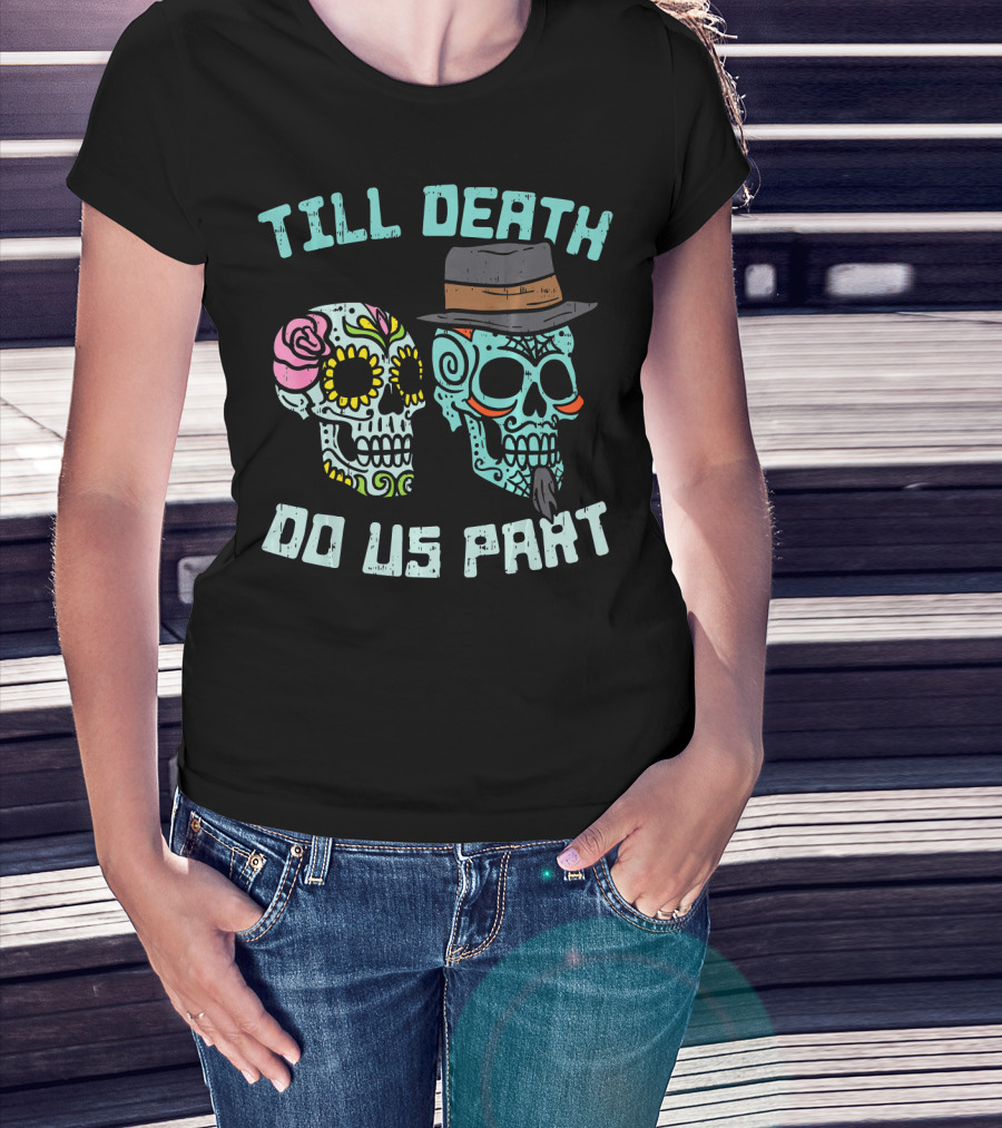 Till Death Do Us Part Sugar Skulls Hat Flower T-Shirt
