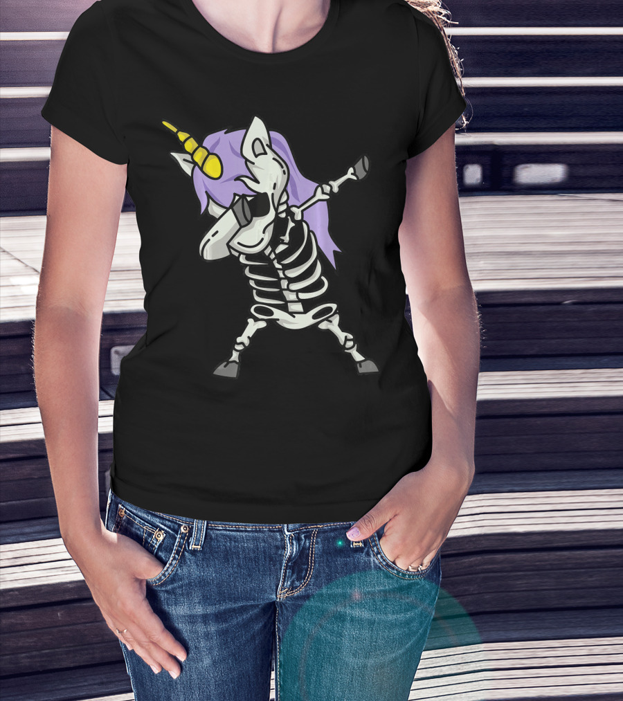 Skeleton Unicorn Dabbing Scary Cool Halloween Co T-Shirt