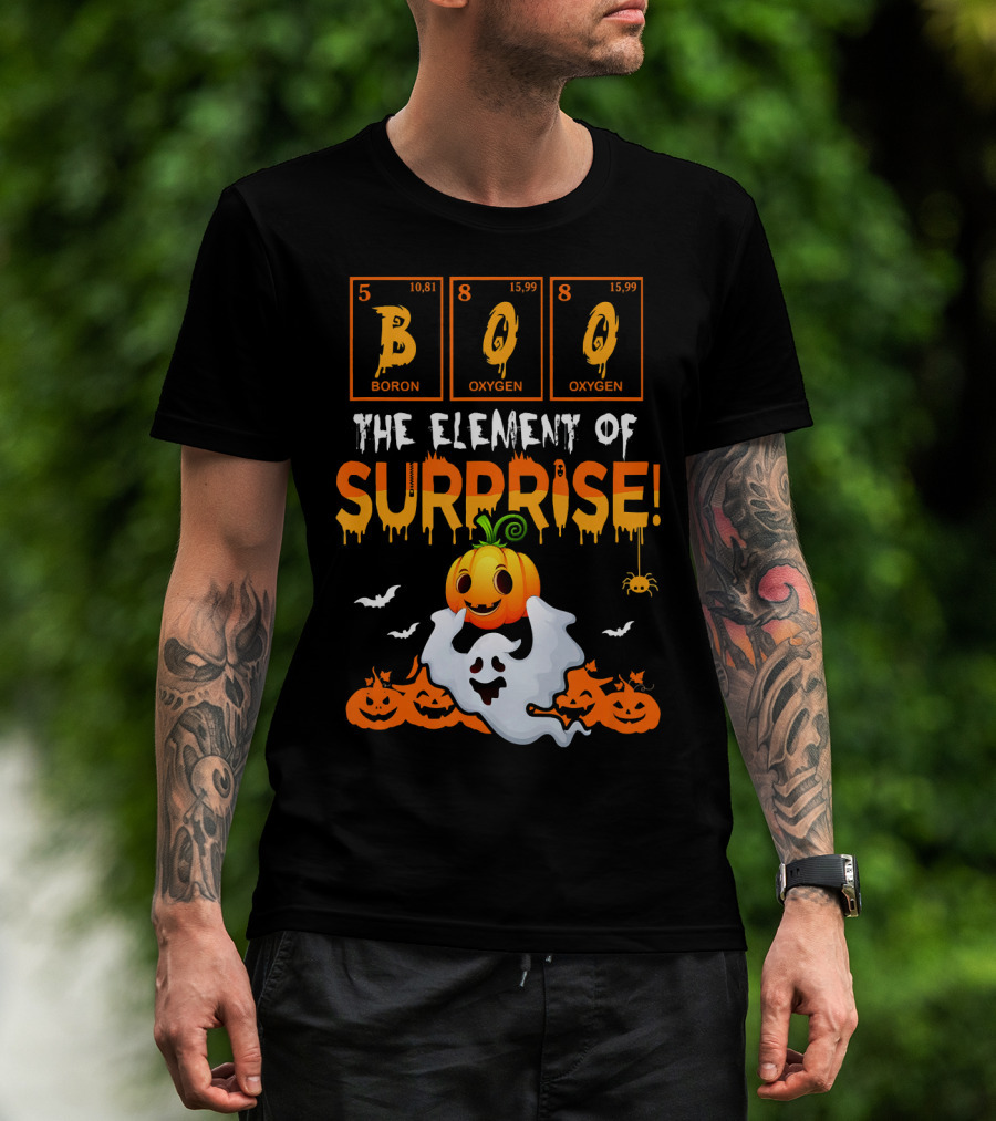 Boo Boron Oxygen The Element Of Surprise Ghost Pumpkins Bats Spider T-Shirt