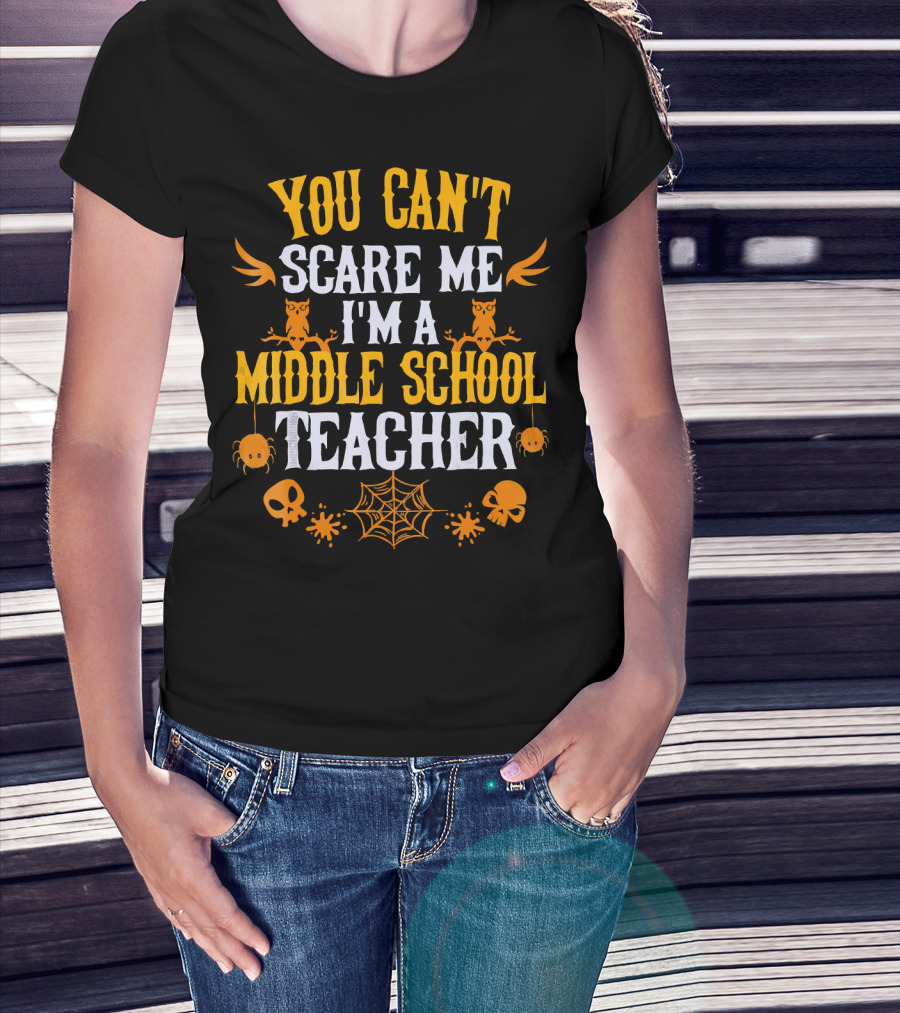 You Can't Scare Me I'm A Middle School Teacher Halloween Owls Skulls Spiders Webs T-Shirt