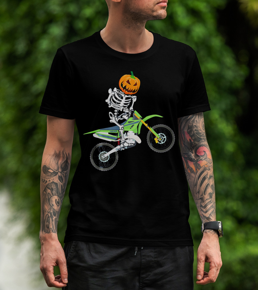 Skeleton Dirt Bike Halloween Pumpkin Rider T-Shirt