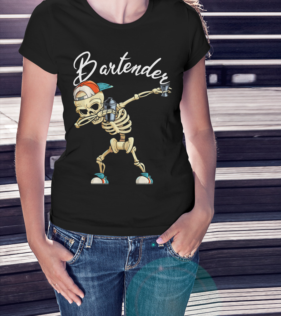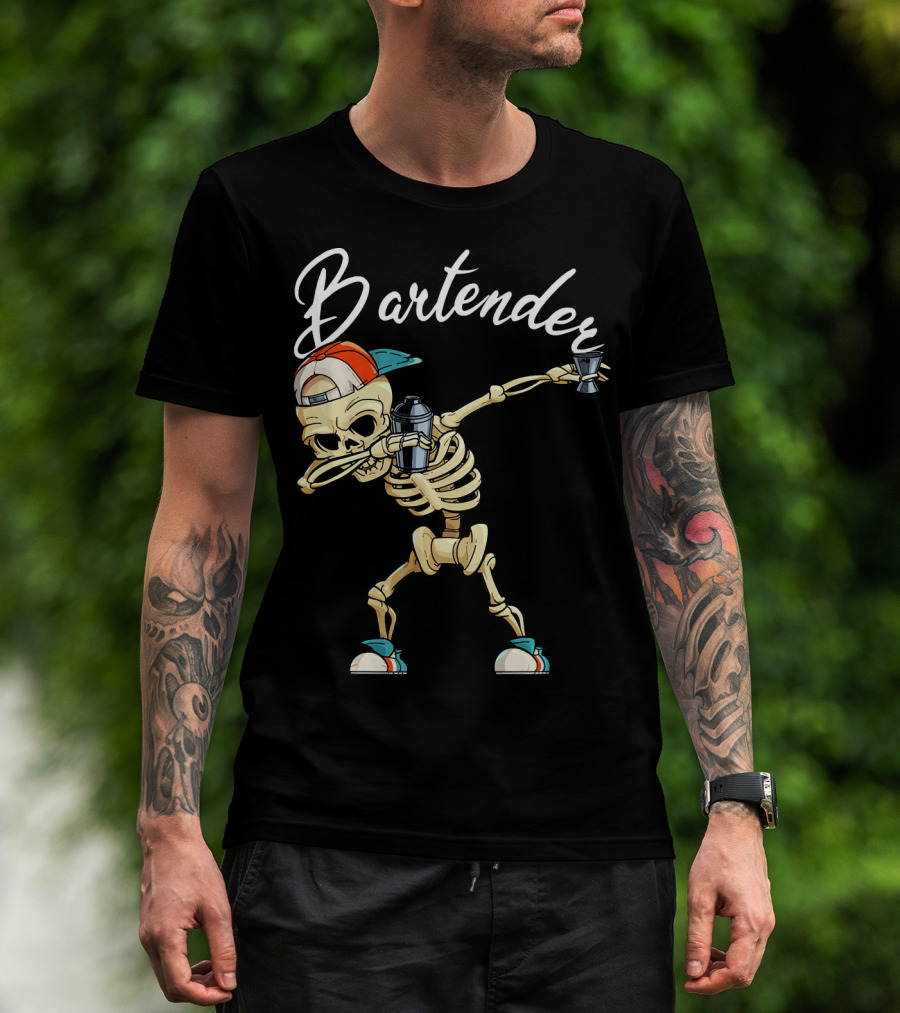 Bartender Skeleton Dab With Shaker And Glass T-Shirt