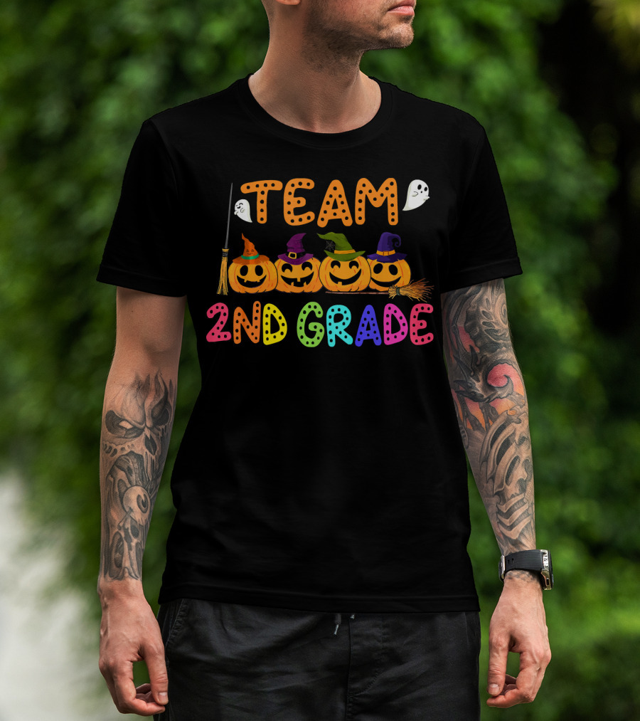 Team 2nd Grade Halloween Pumpkin Crew T-Shirt