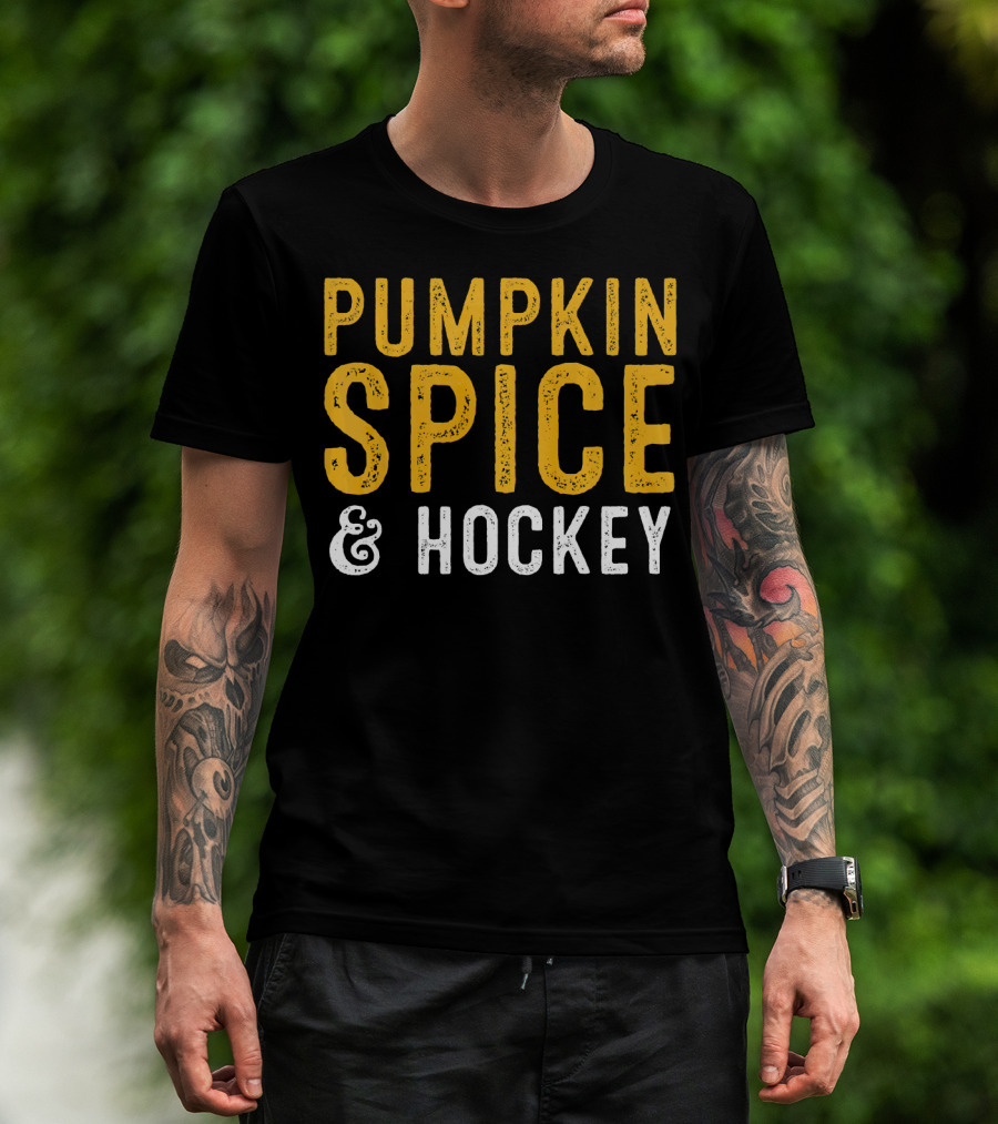 The Pumpkin Spice and Hockey T-shirt is designed for everyday wear and a consistent fit. Fabric is pre-shrunk ring-spun cotton with durable stitching. See the size chart below for exact measurements.