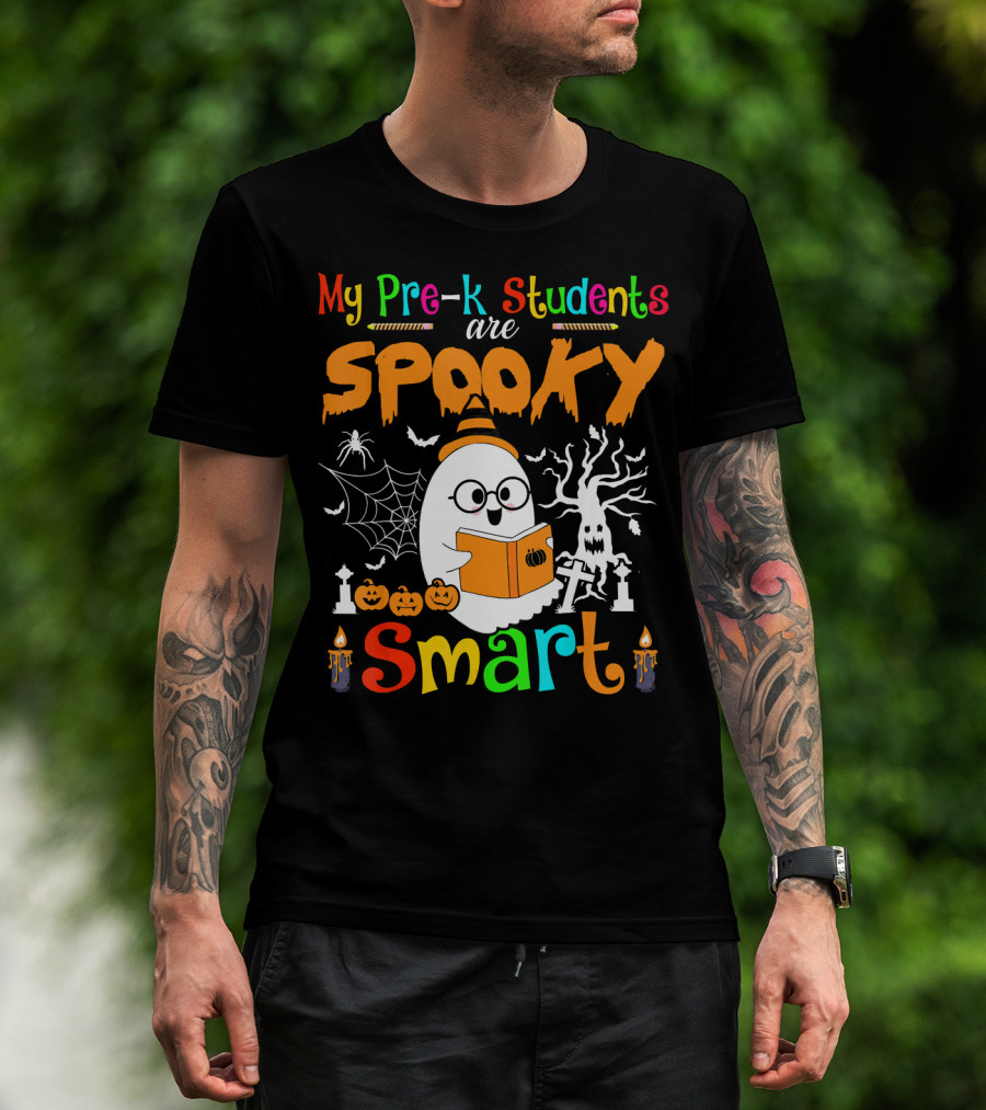 My Pre-K Students Are Spooky Smart Ghost With Book And Halloween Elements T-Shirt
