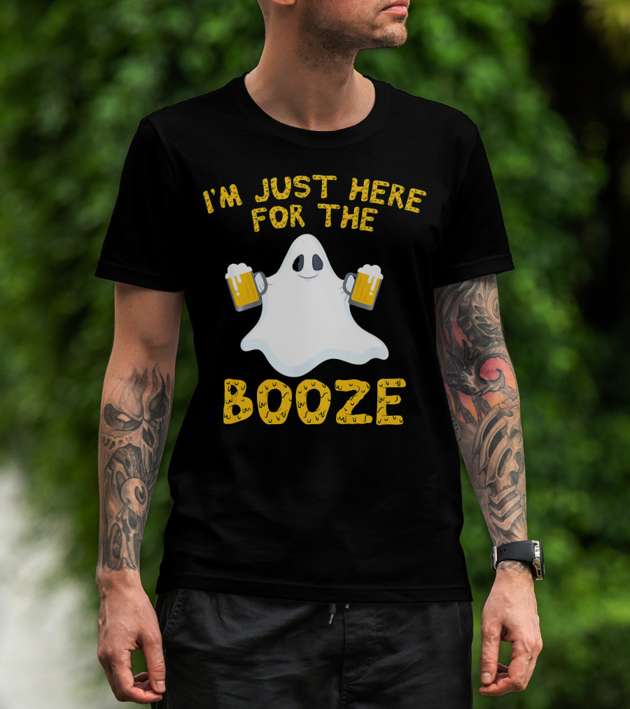 I'm Just Here For The Booze Ghost Holding Beer Mugs T-Shirt