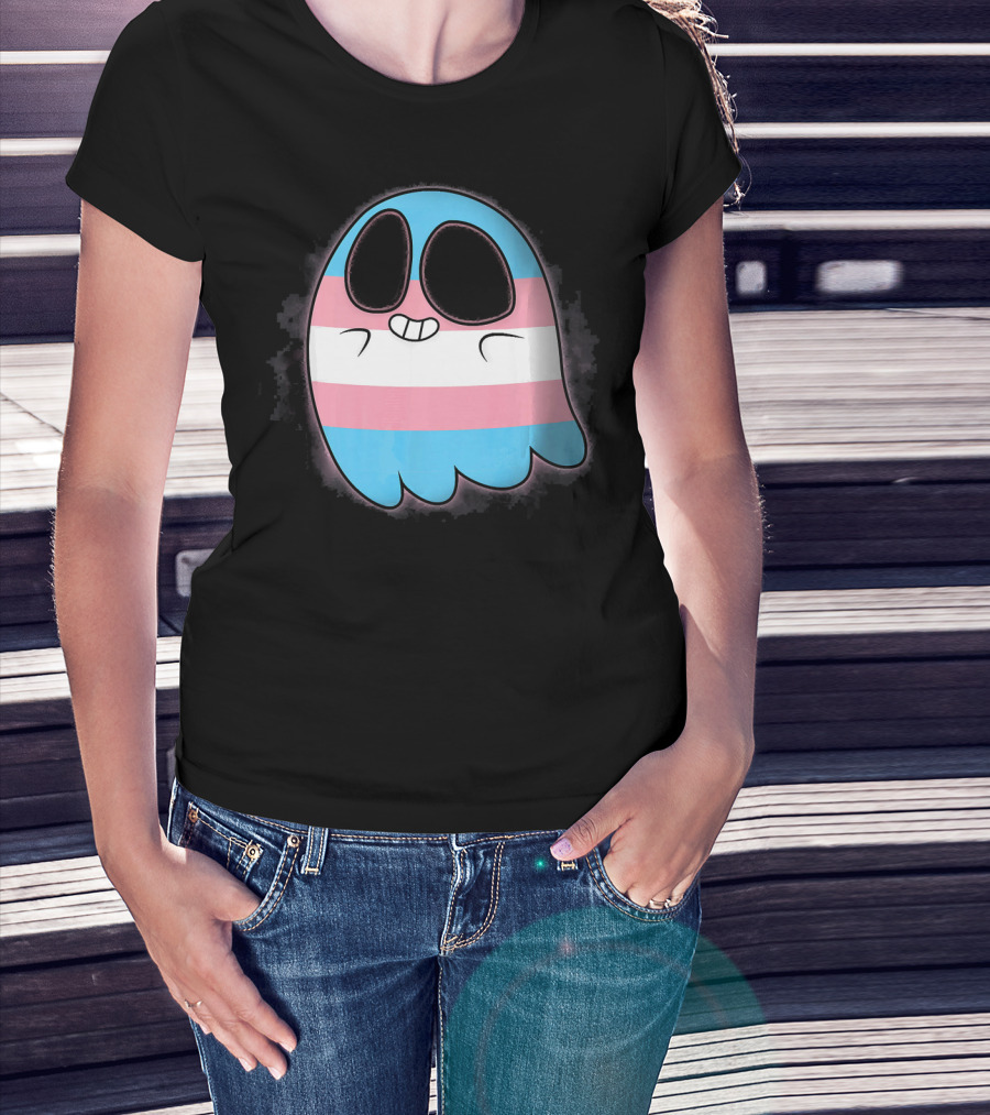Cute Smiling Rainbow Transgender Ghost Pac-Man T-Shirt