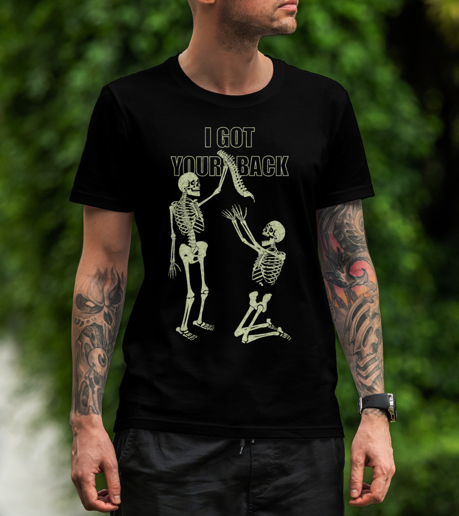 The I Got Your Back Halloween Skeletons T-shirt is designed for everyday wear and a consistent fit. Fabric is pre-shrunk ring-spun cotton with durable stitching. See the size chart below for exact measurements.