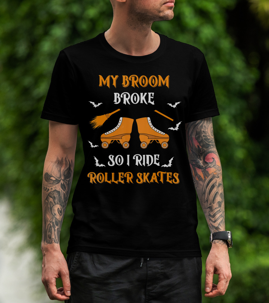 My Broom Broke So I Ride Roller Skates Halloween Roller Skater T-Shirt