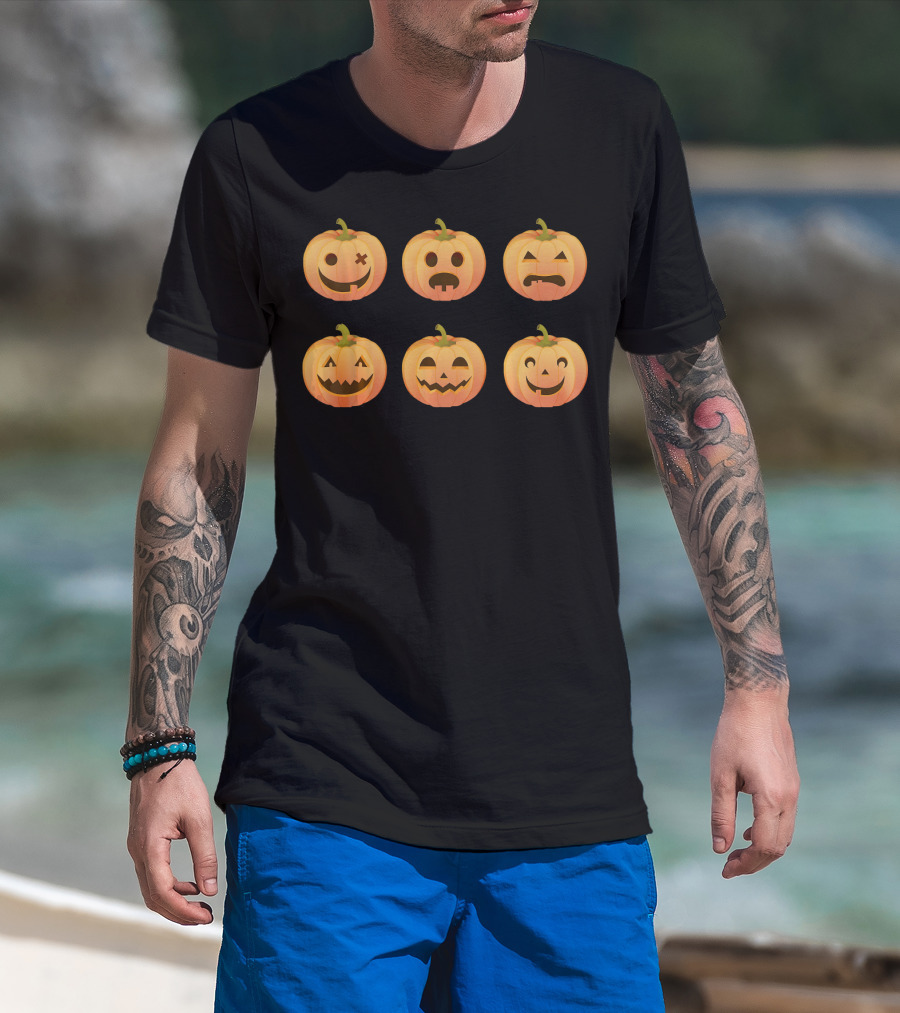 Pumpkin Emoji Faces Halloween Expressions T-Shirt