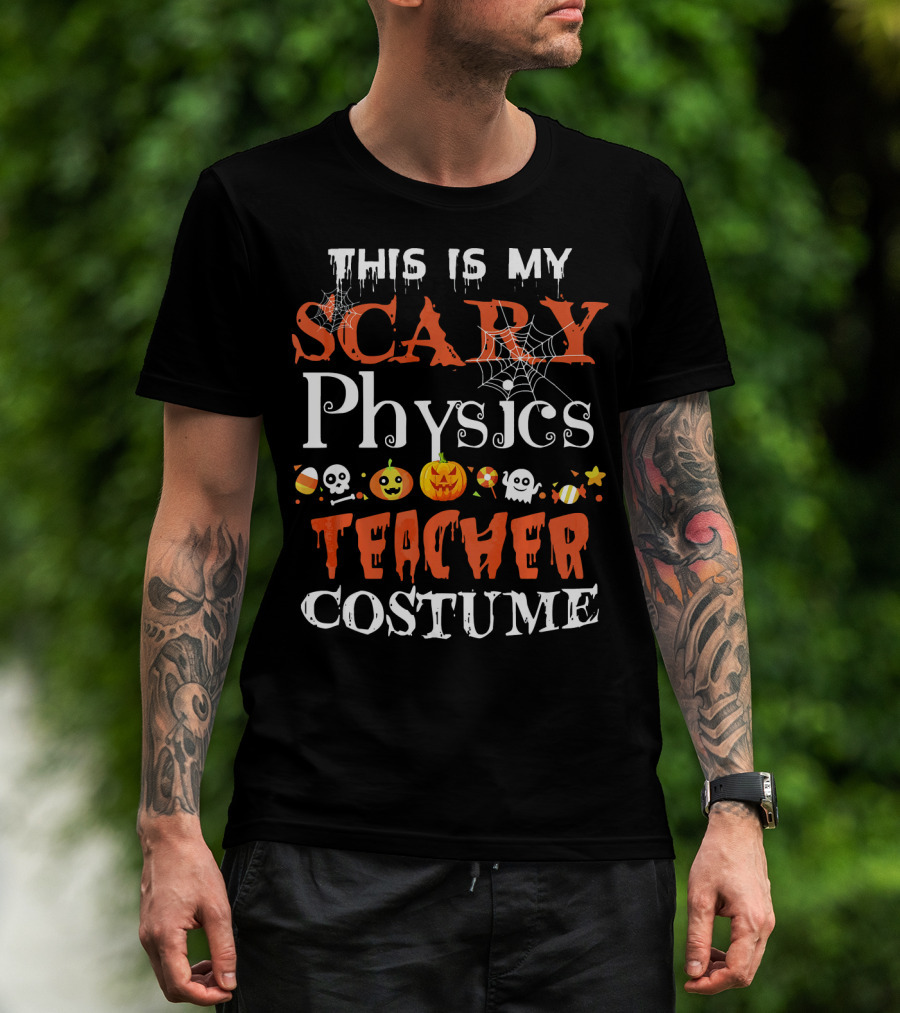 This Is My Scary Physics Teacher Costume With Spooky Halloween Icons T-Shirt