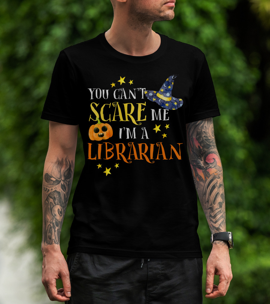You Can't Scare Me I'm A Librarian Halloween Pumpkin Witch Hat Stars T-Shirt