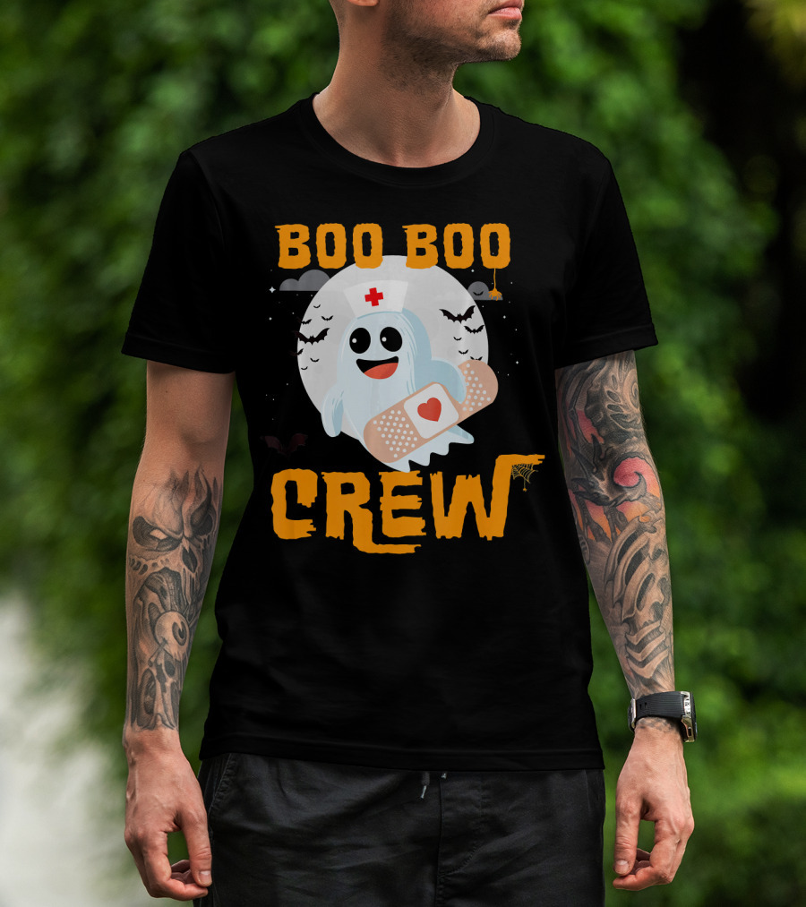 Boo Boo Crew Nurse Ghost Halloween Bandage Spooky Bat Moon Costume T-Shirt