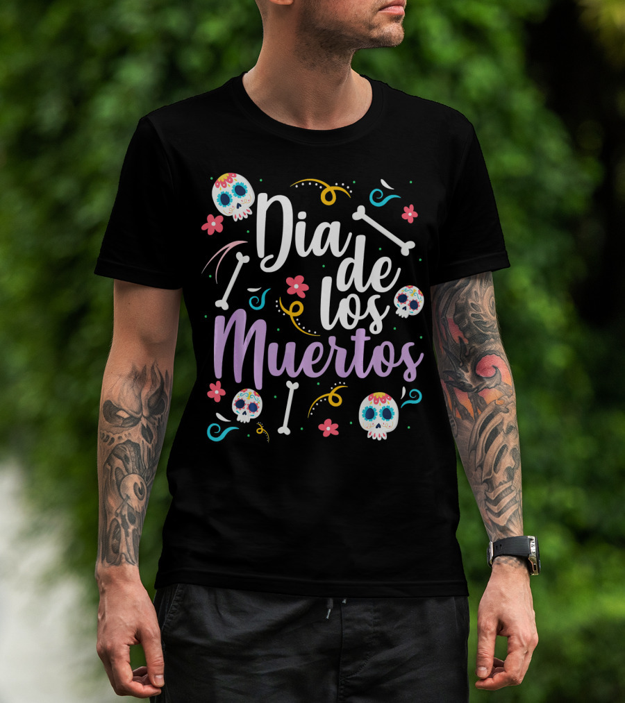 Dia De Los Muertos Colorful Sugar Skulls And Bones T-Shirt