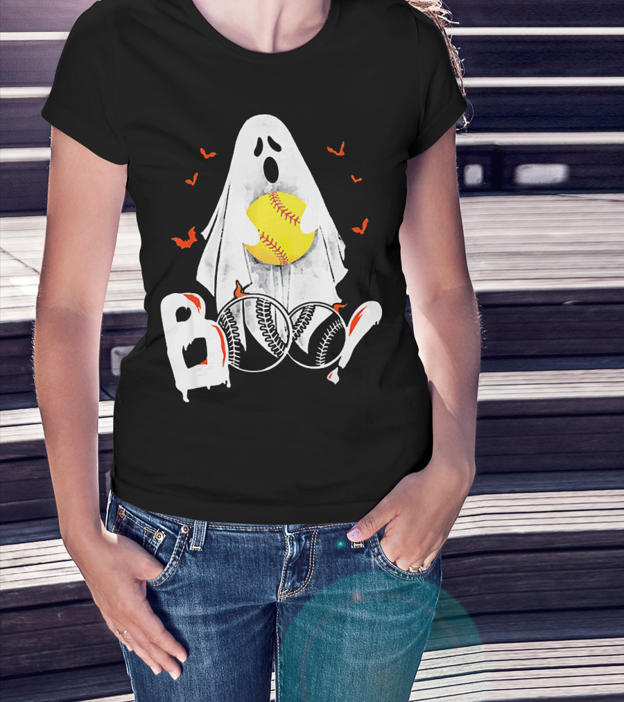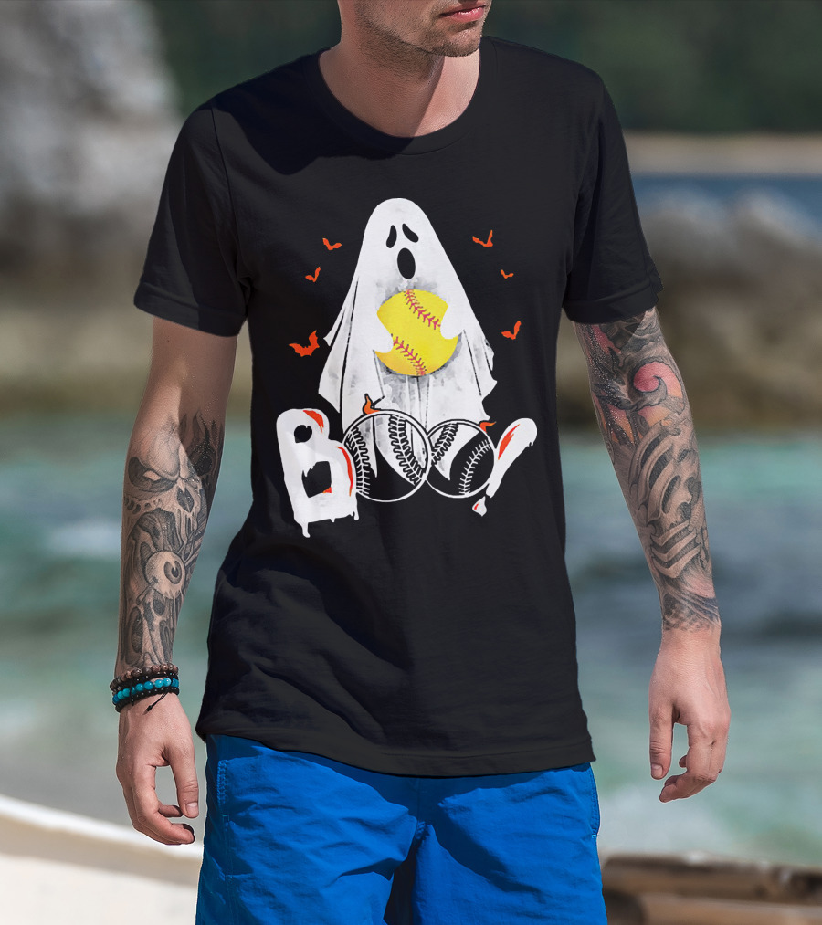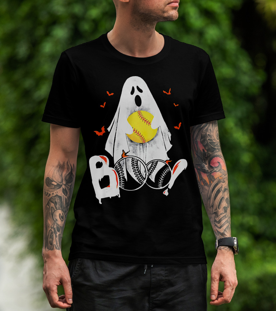 Ghostly Boo Softball With Yellow Softball And Bats T-Shirt