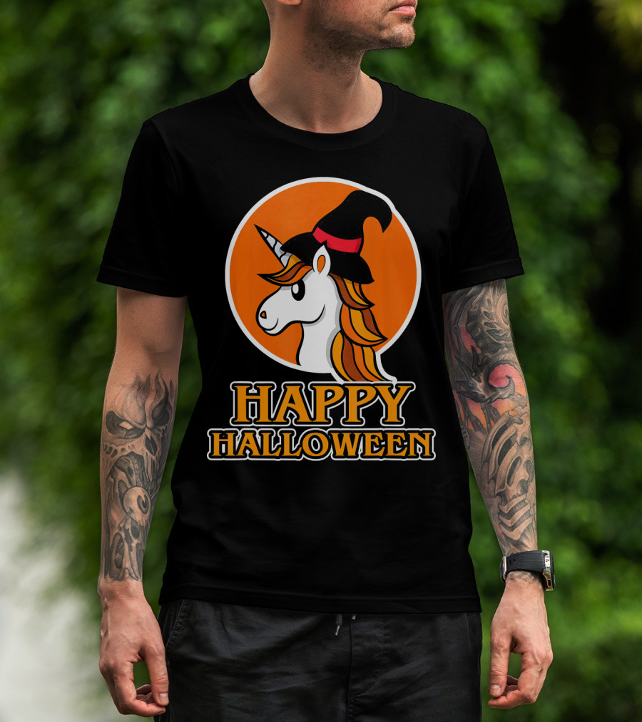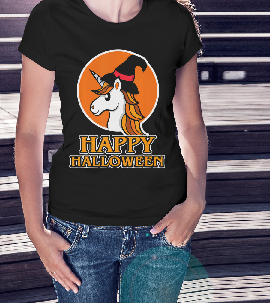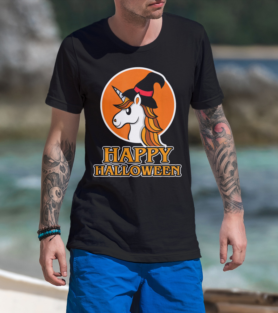 Happy Halloween Unicorn With Witch Hat T-Shirt